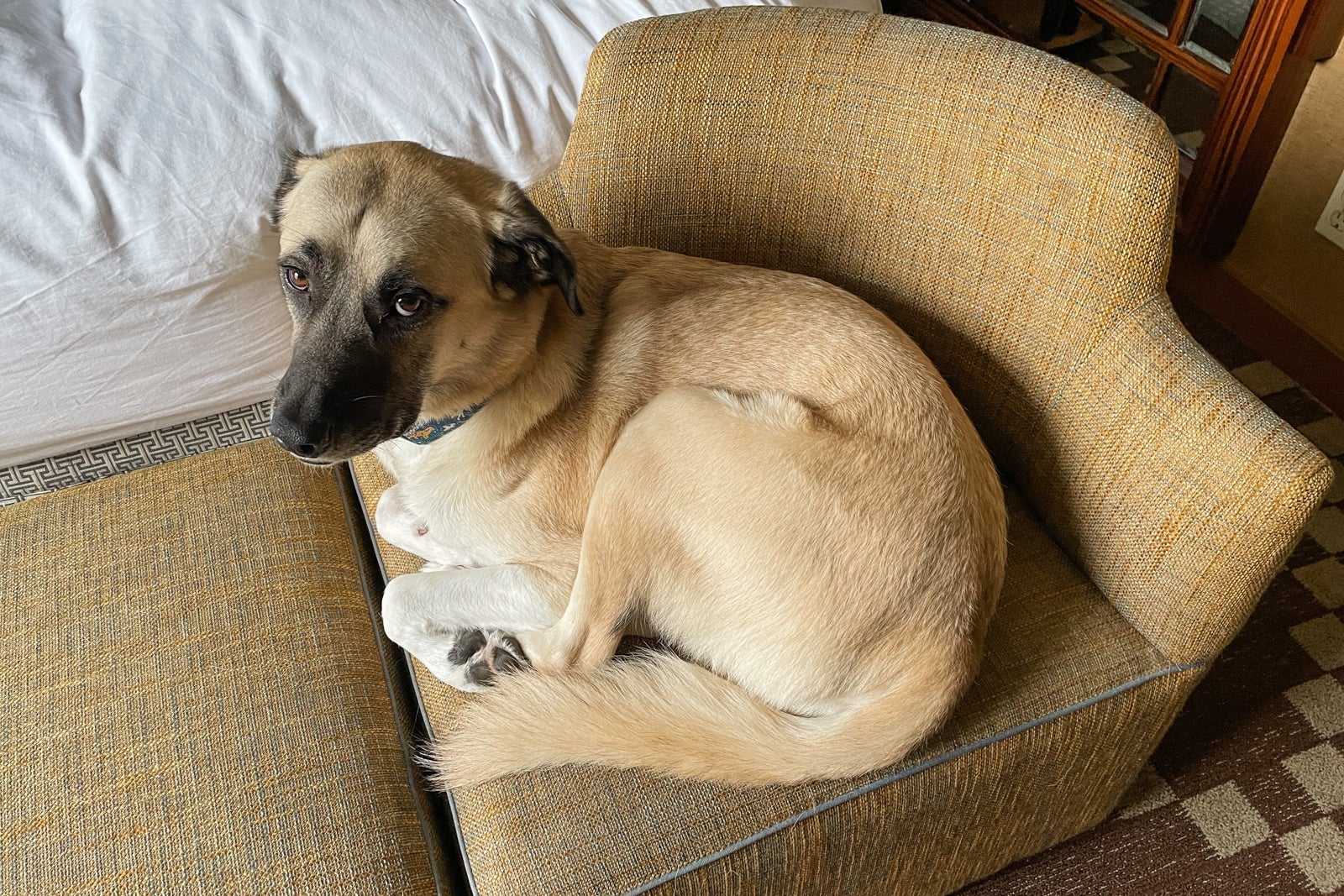 On to a very important question: Did my dog find the stay acceptable? While he was initially uncertain about being in a new place, he quickly warmed up to the room we had and enjoyed his time. The hotel staff were kind and accommodating from the moment we arrived, offering him a large dog cookie to occupy him while I checked in. A small but much-appreciated inclusion at the front desk was a hook for me to tie Koda's leash to, freeing my hands while I handled the check-in process.