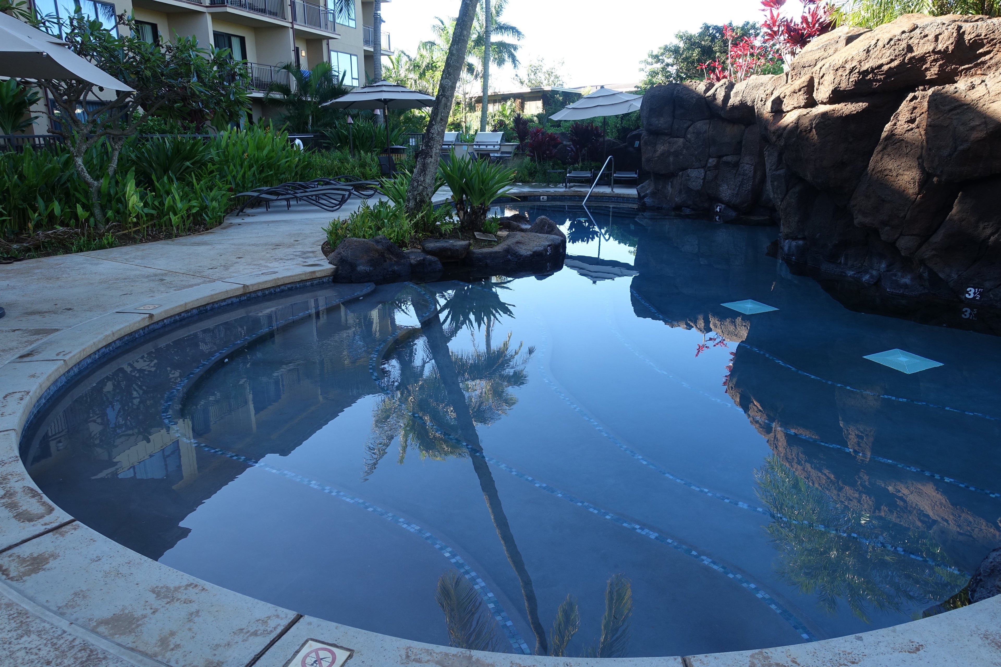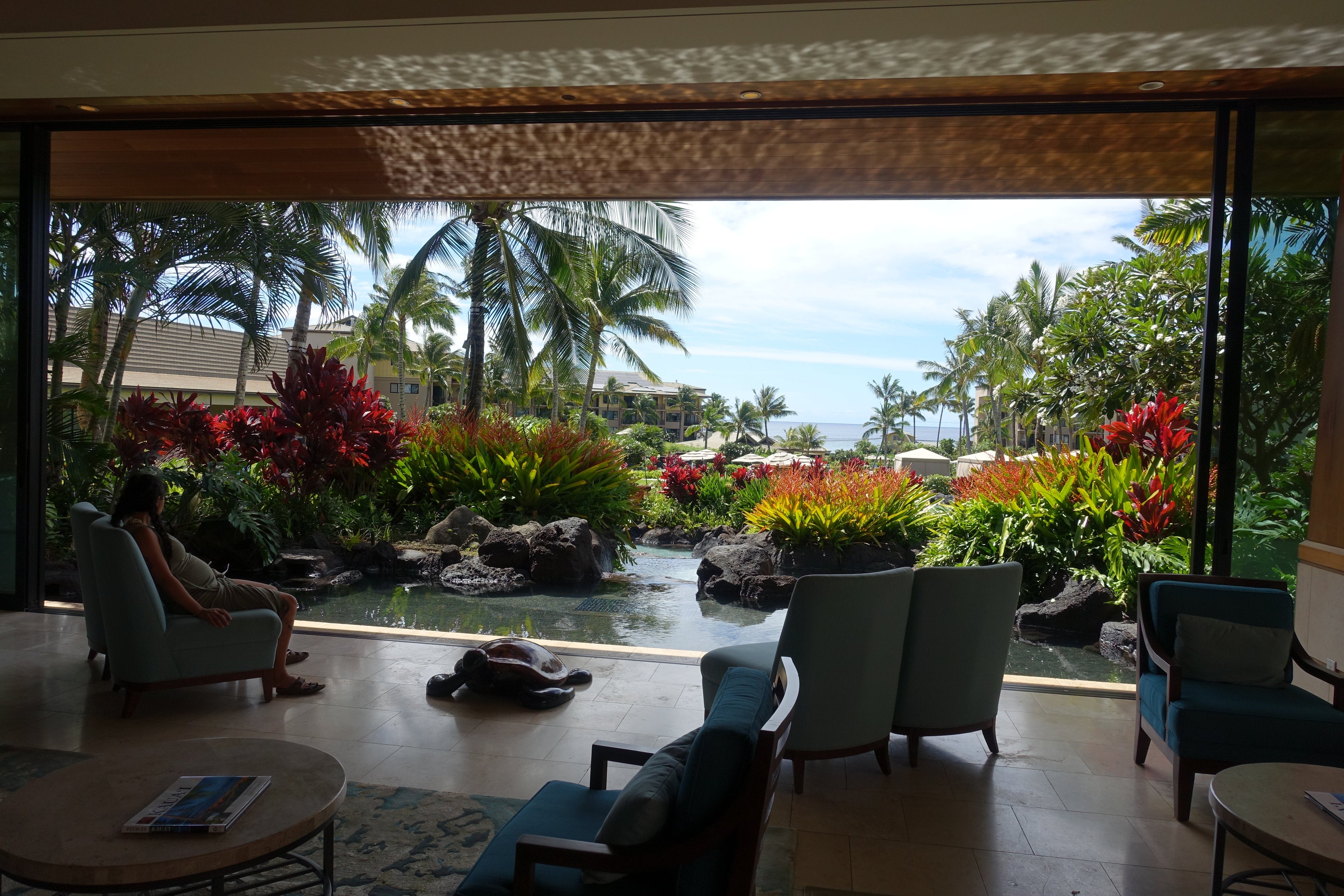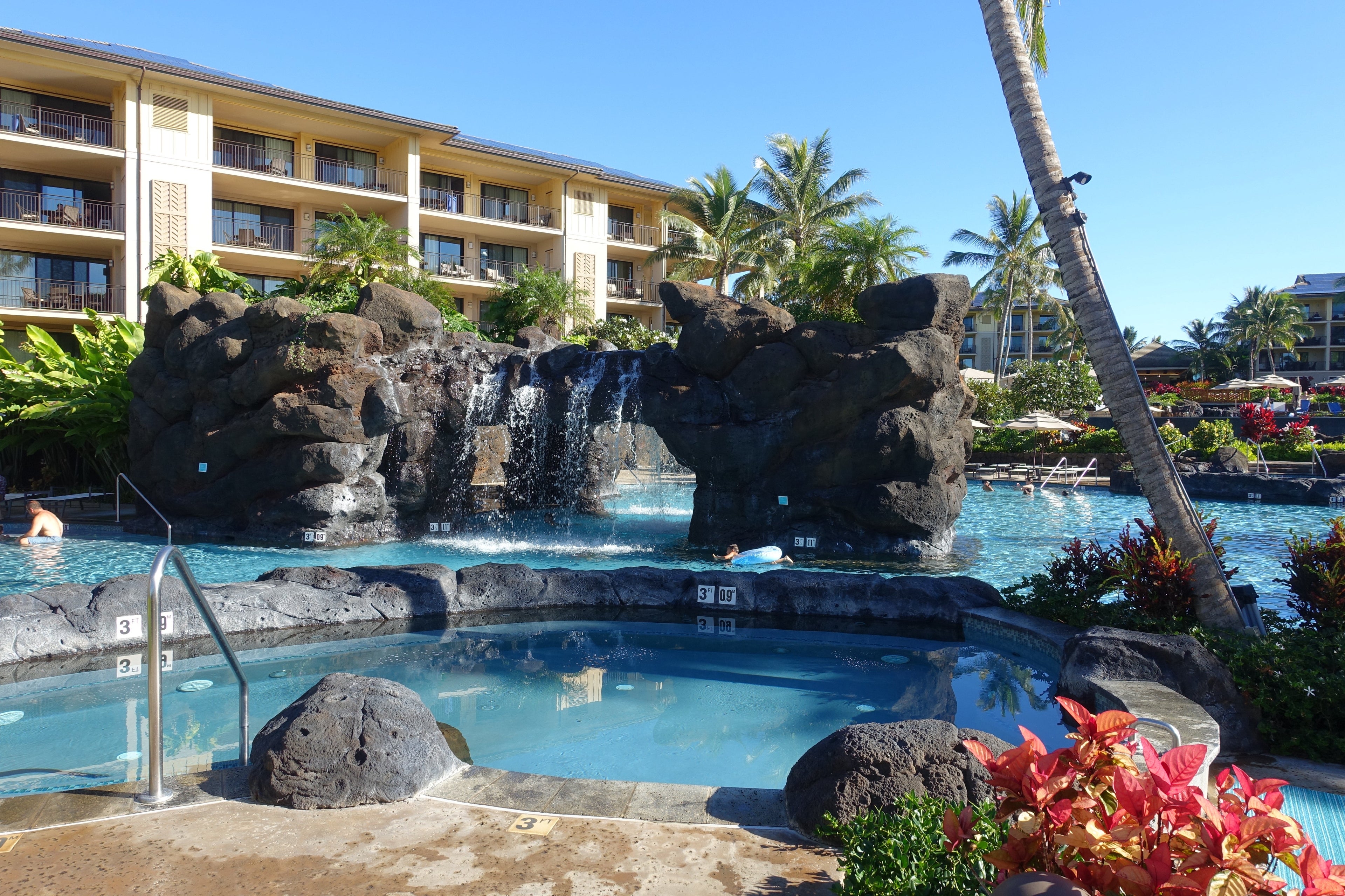 Walking into Koloa Landing felt like walking into paradise. The lobby had a stunning vista of the resort's elaborate pools replete with palm trees. Beyond that: the sparkling ocean. There was an artificial stream that trickled from the lobby all the way to lower pools, creating tropical sights and sounds as soon as you stepped into the building.