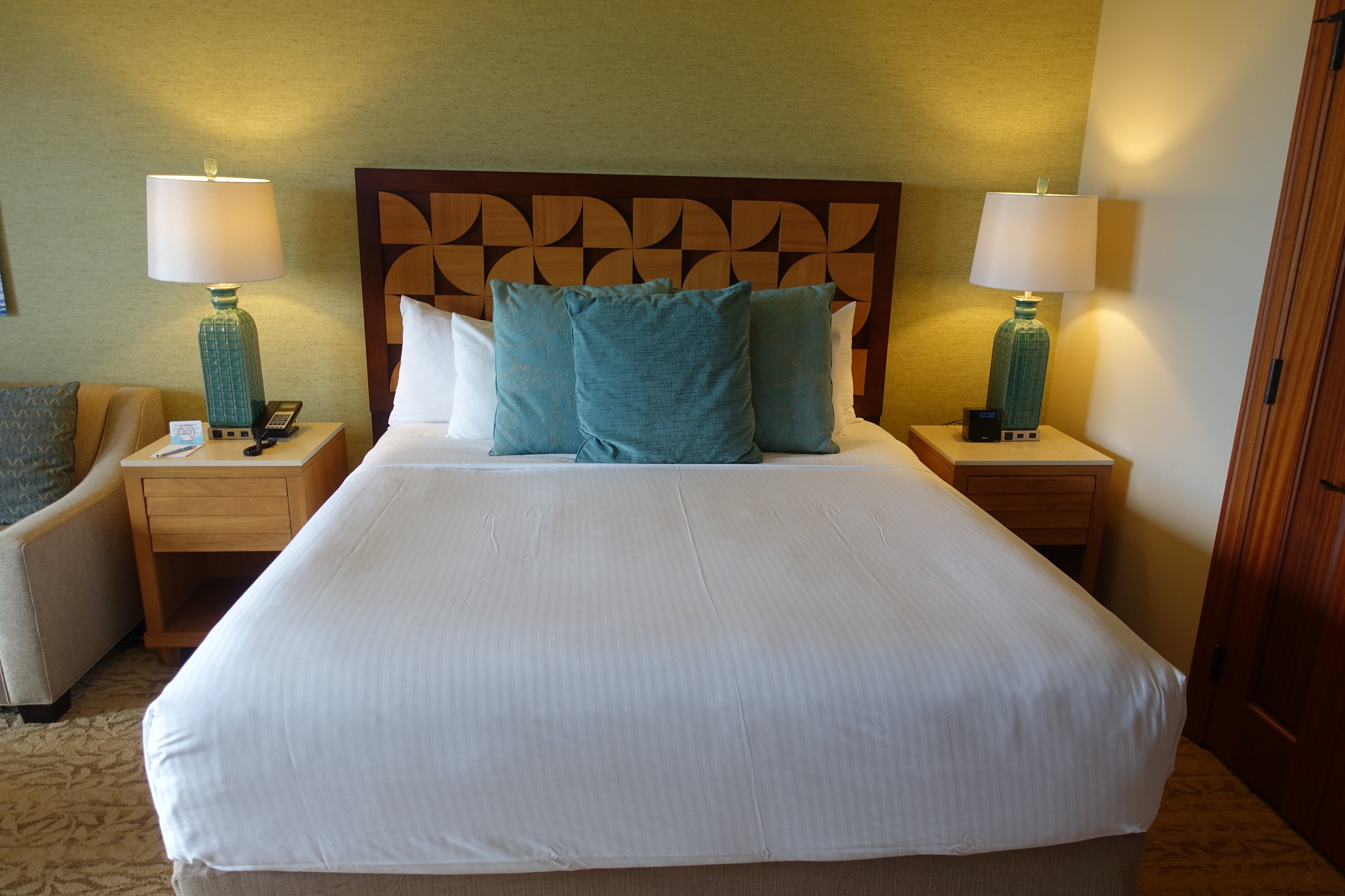 We were given fresh leis upon check-in, an extra touch that accentuated the fact that we were now in Hawaii. The staff also gave us a welcome bag, a branded pool tote containing a bottle of Hawaii-brand filtered water and local chocolate-covered macadamia nuts. They explained that this was part of the $32 daily resort fee which also included complimentary mai tais at check-in, complimentary Wi-Fi for up to eight devices, complimentary self parking, access to all the pools (though you'd think that access to all resort pools should be a part of the room rate), access to sports activities including a putting green, access to the 24 hour business and fitness centers, access to grills across the property and more. Though the list was exhaustive, nothing besides the complimentary mai tais and Wi-Fi felt like perks that shouldn't already be included in the price of entry.