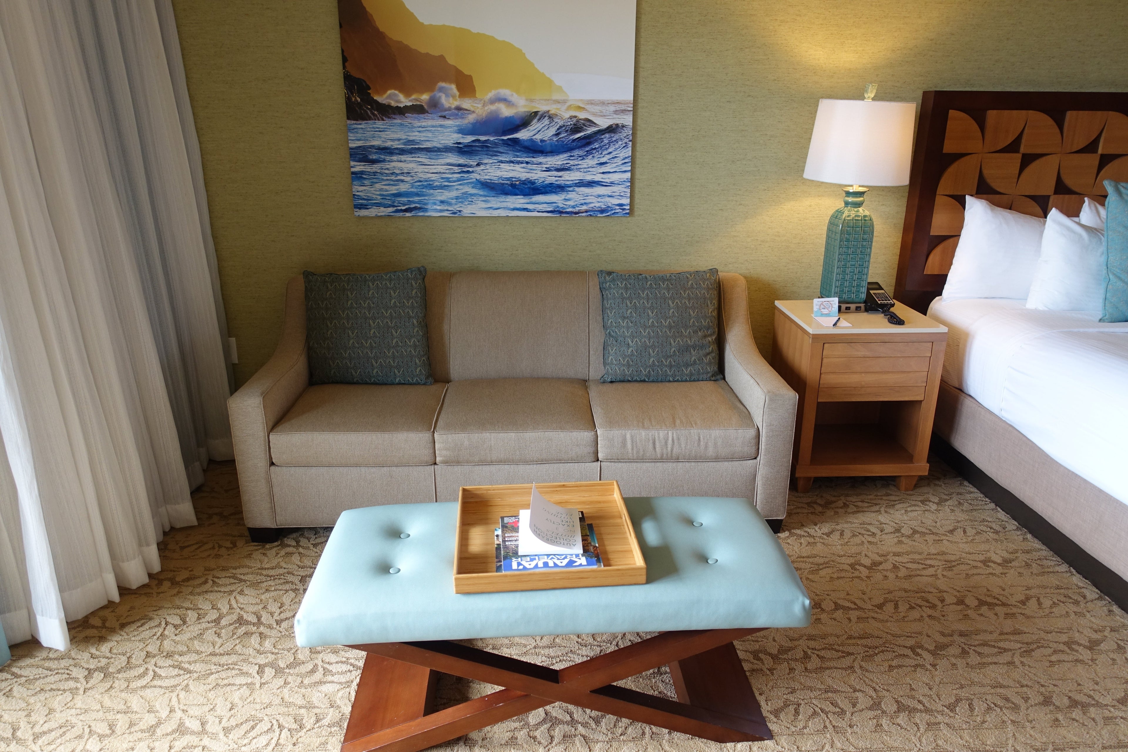 The sweeping Koloa Landing property was divided into nine large guest buildings. Our room, in Building 8 near the main pool, had a modern, beachy and tranquil feel. The design elements featured calming shades of turquoise and light tans.