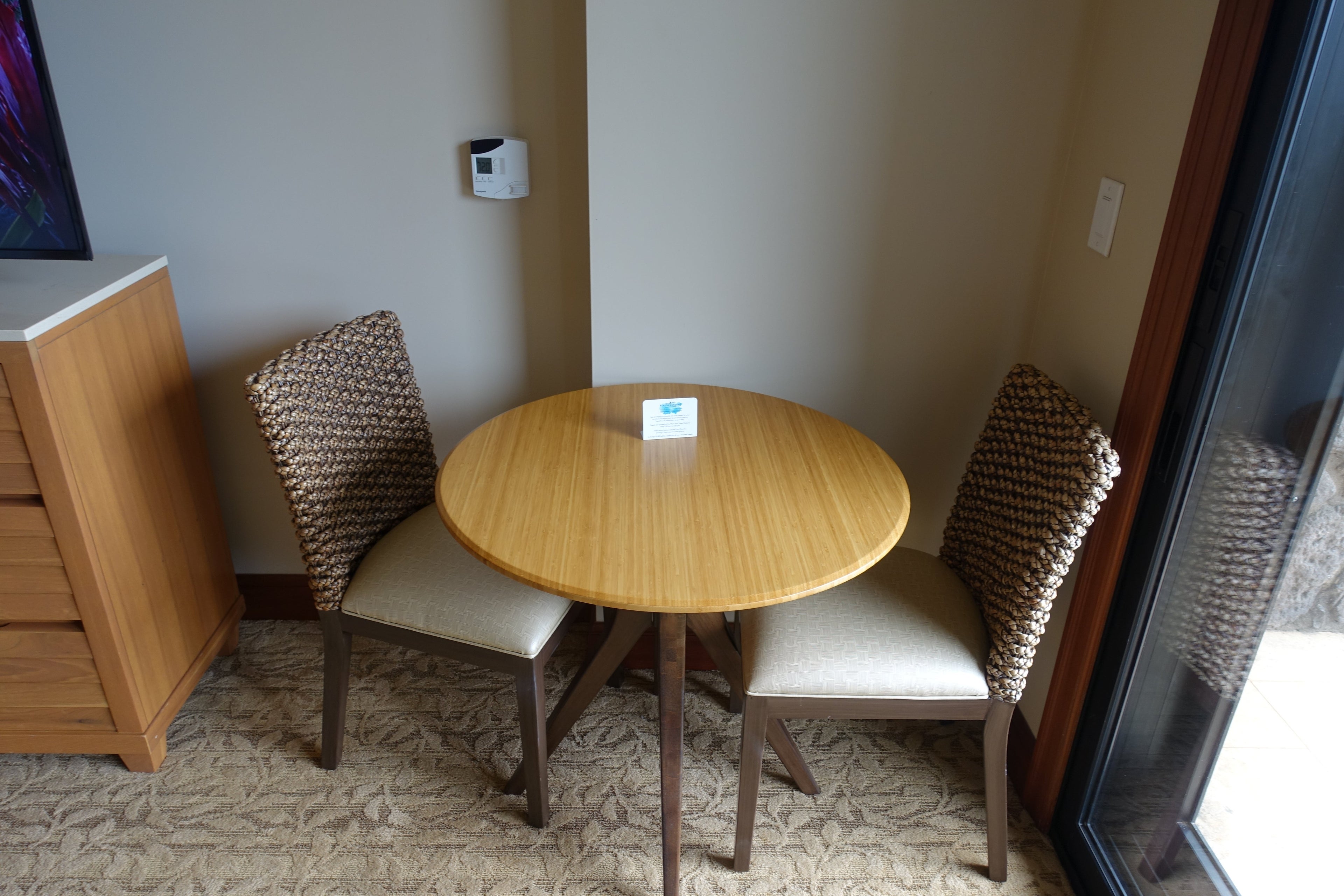 It had a king bed, large TV with streaming apps (Netflix, Hulu, et al.), a small sitting area with a couch and coffee table and a dining table set.