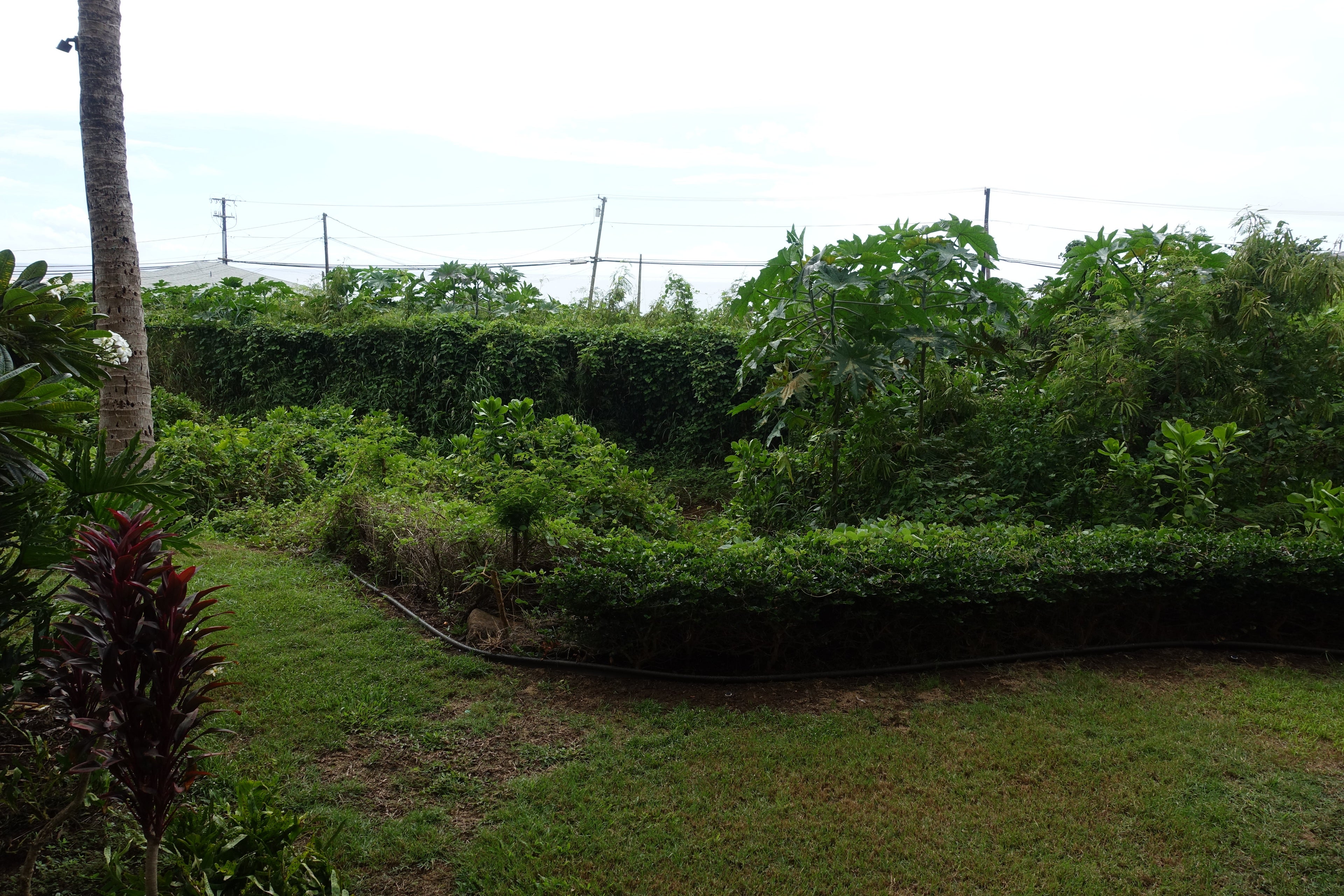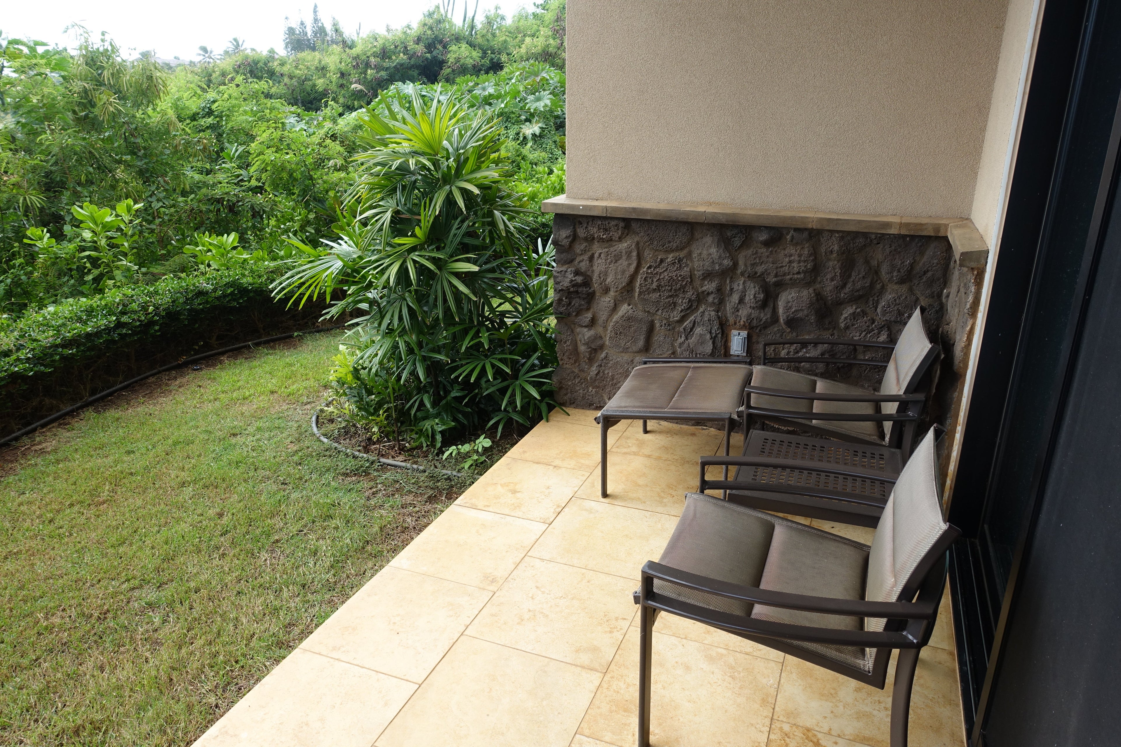 Our ground-floor room also had a small patio surrounded by greenery. If we craned our necks, we could see a sliver of the blue ocean.