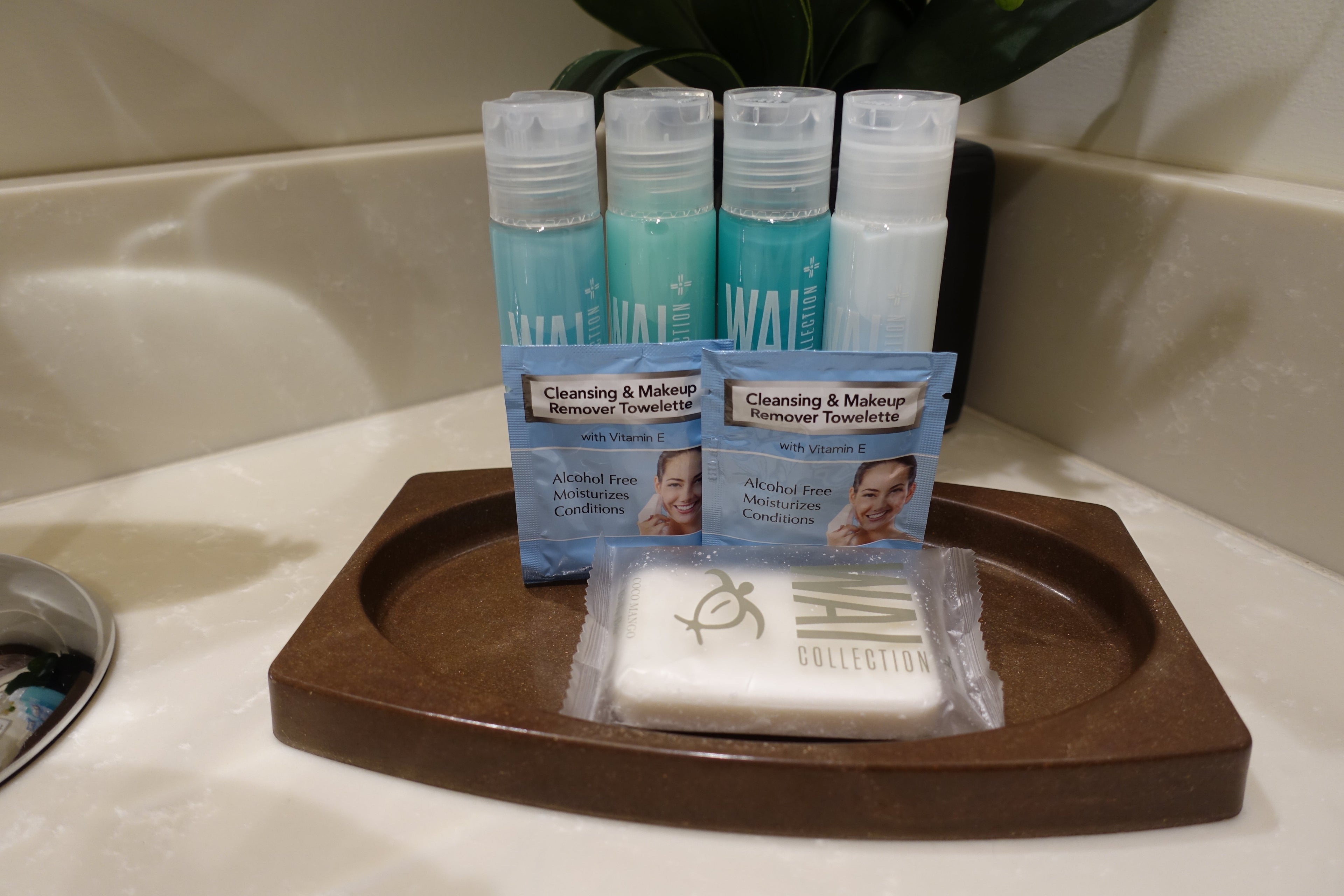 The bathroom was spacious, with a large shower but no tub. It also had a washer and dryer discreetly concealed in its own closet. The toiletries were a coconut-mango scent that was refreshing and tropical. I appreciated the makeup wipes — a product some hotels skimp on.