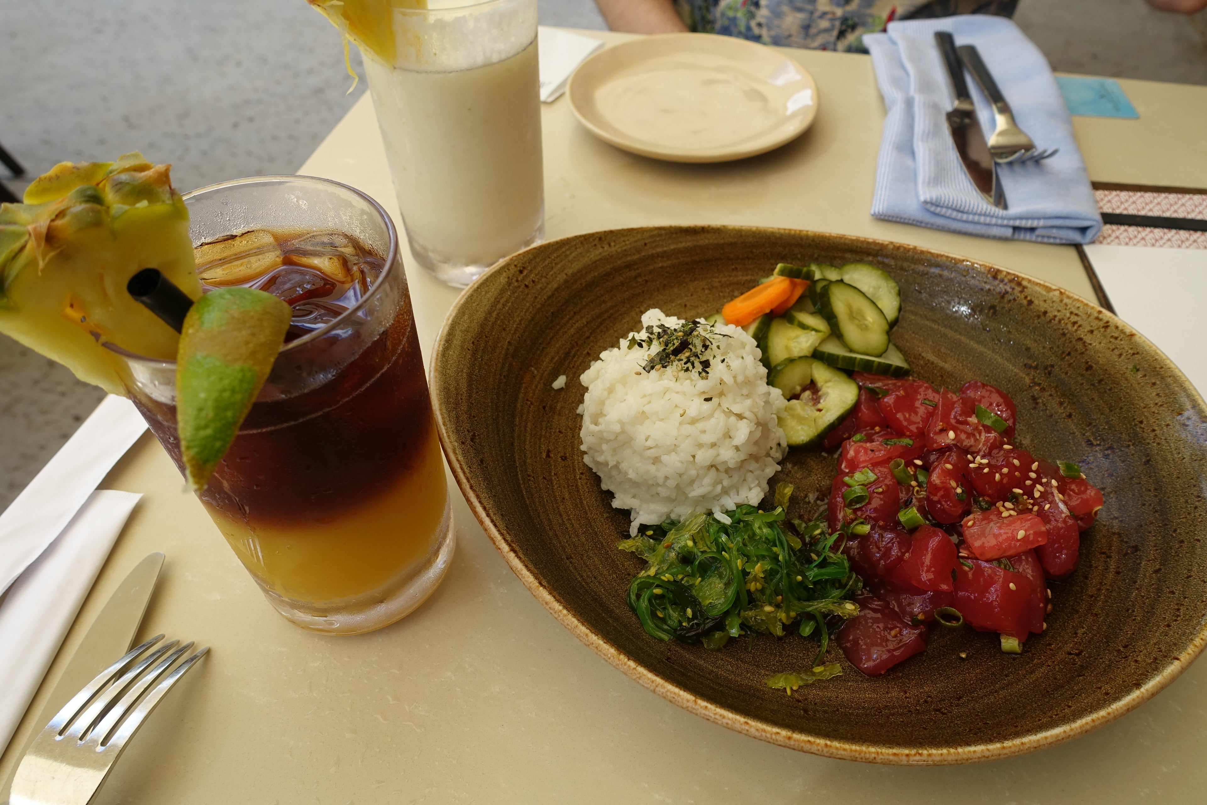 Koloa Landing's only restaurant, Holoholo Grill, was opened in collaboration with chef Sam Choy, a James Beard Award winner. Initially we were concerned since it's the only restaurant for such a large property, but we didn't have any issues with waiting for a table. It's possible that many guests ate meals off the property since Koloa was so close and provided many options for dining. Everything we tried at Holoholo was delectable and had a distinct Hawaiian vibe to it. My favorite was the fresh poke platter washed down with a house mai tai.