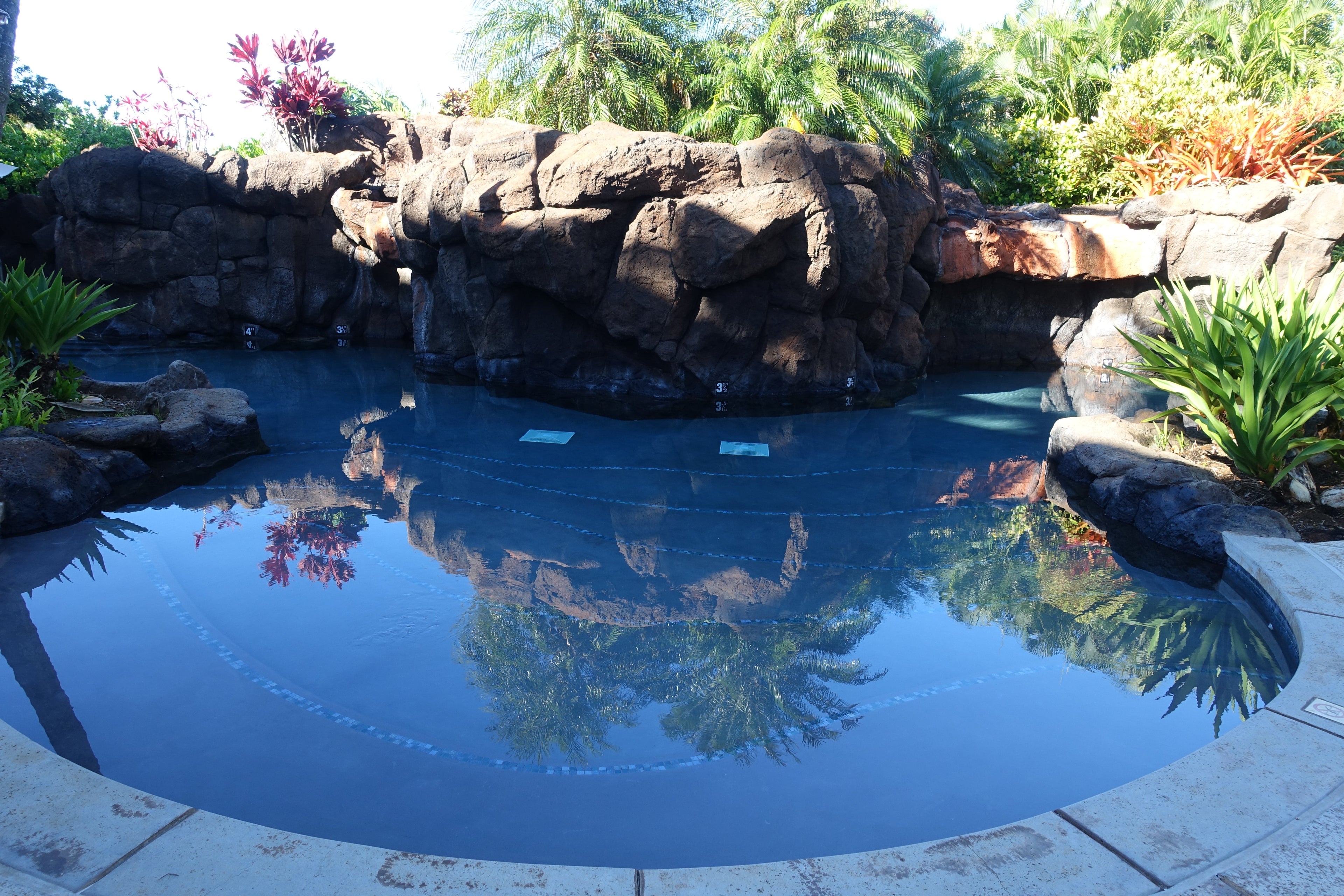 We arrived at about 11am, and our room wasn't ready, but, as I said above, the front desk gave us two vouchers for complimentary mai tais, which we happily cashed in at the poolside restaurant, Holoholo Grill. At about 1:30pm, we got a text saying our room was ready for us.