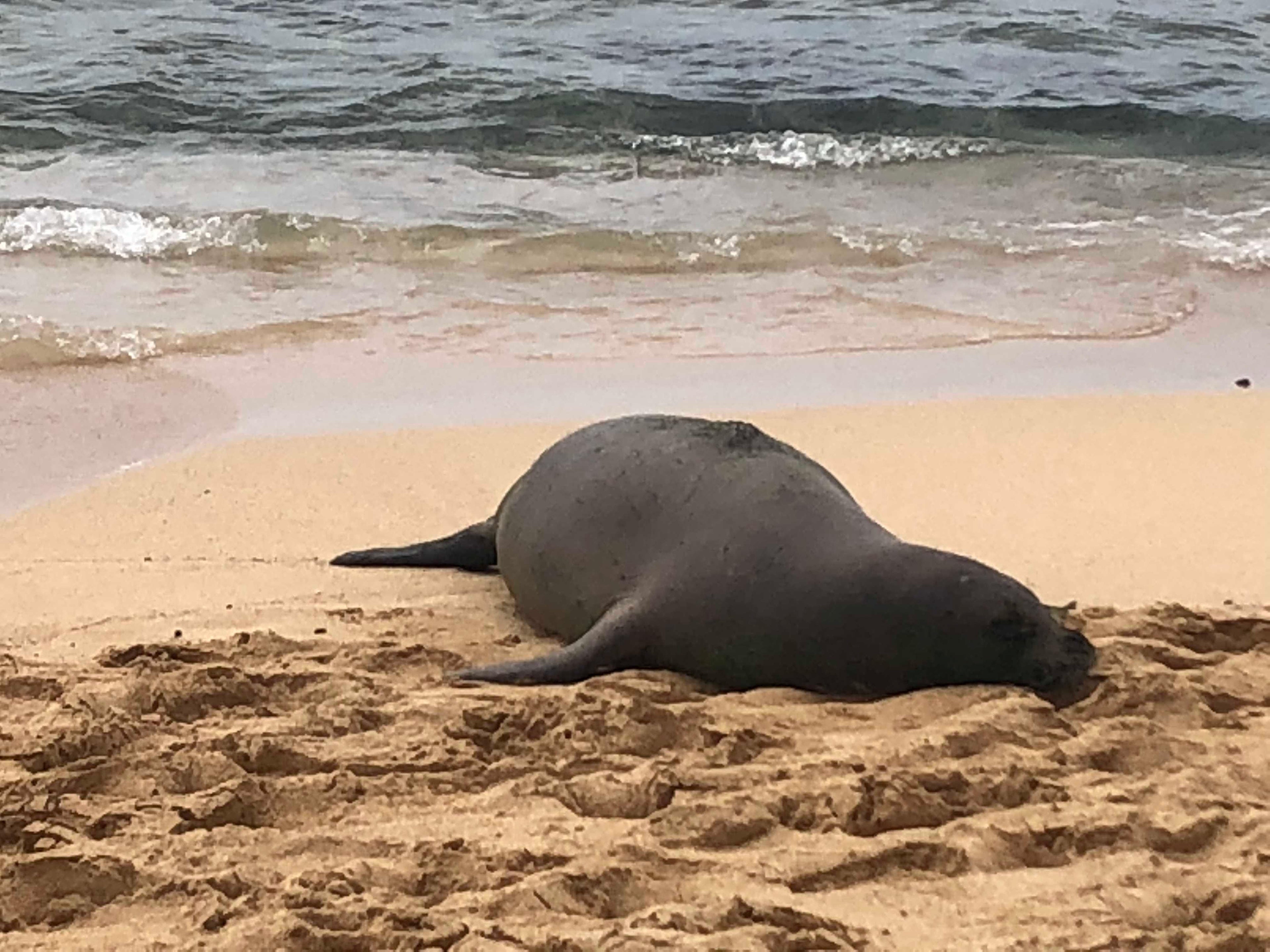 We also got to see an endangered Hawaiian monk seal sunning on the beach. There are less than 40 of these seals left on the island, and a government conservationist guarding the one we saw told us Poipu Beach is one of their favorite spots.
