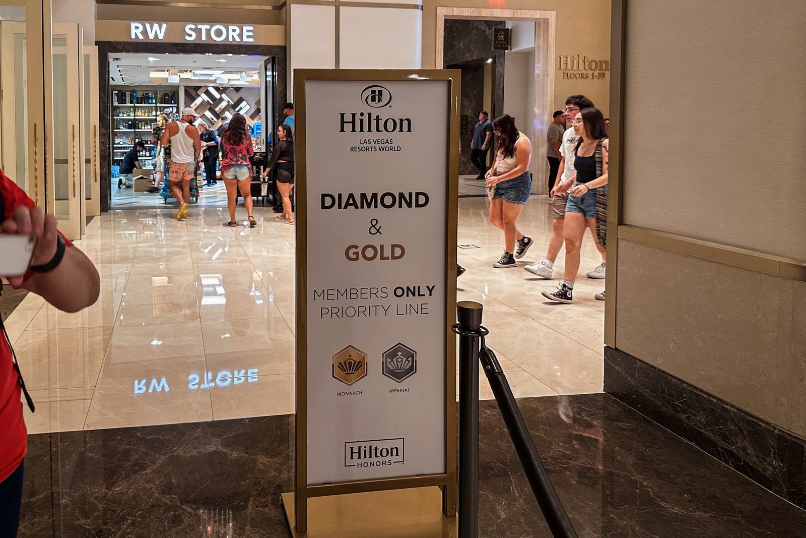 Thanks to the complimentary Diamond status I get as a Hilton Aspire cardholder, I was able to check my party in using the designated Gold and Diamond member line, which was empty upon arrival. This was a welcome sight, especially because the regular check-in line was quite long.