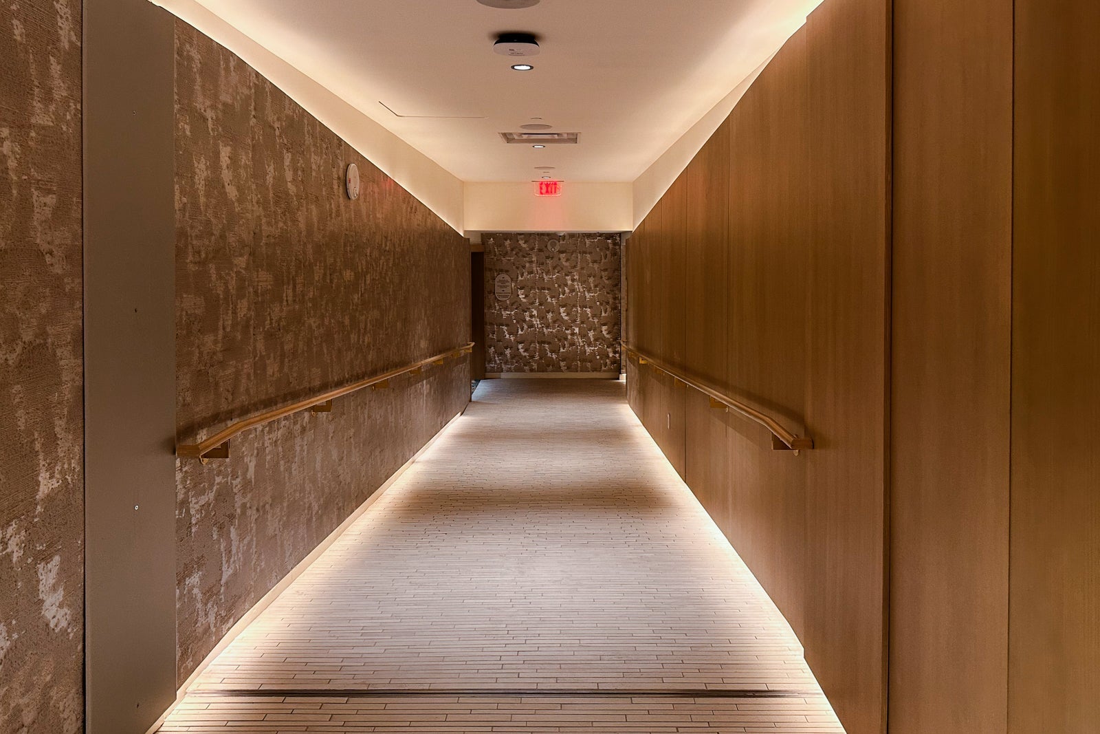 There are also rooms for the deaf and hard of hearing with a doorbell outside that sets off a chime and strobe-light alert inside the room.