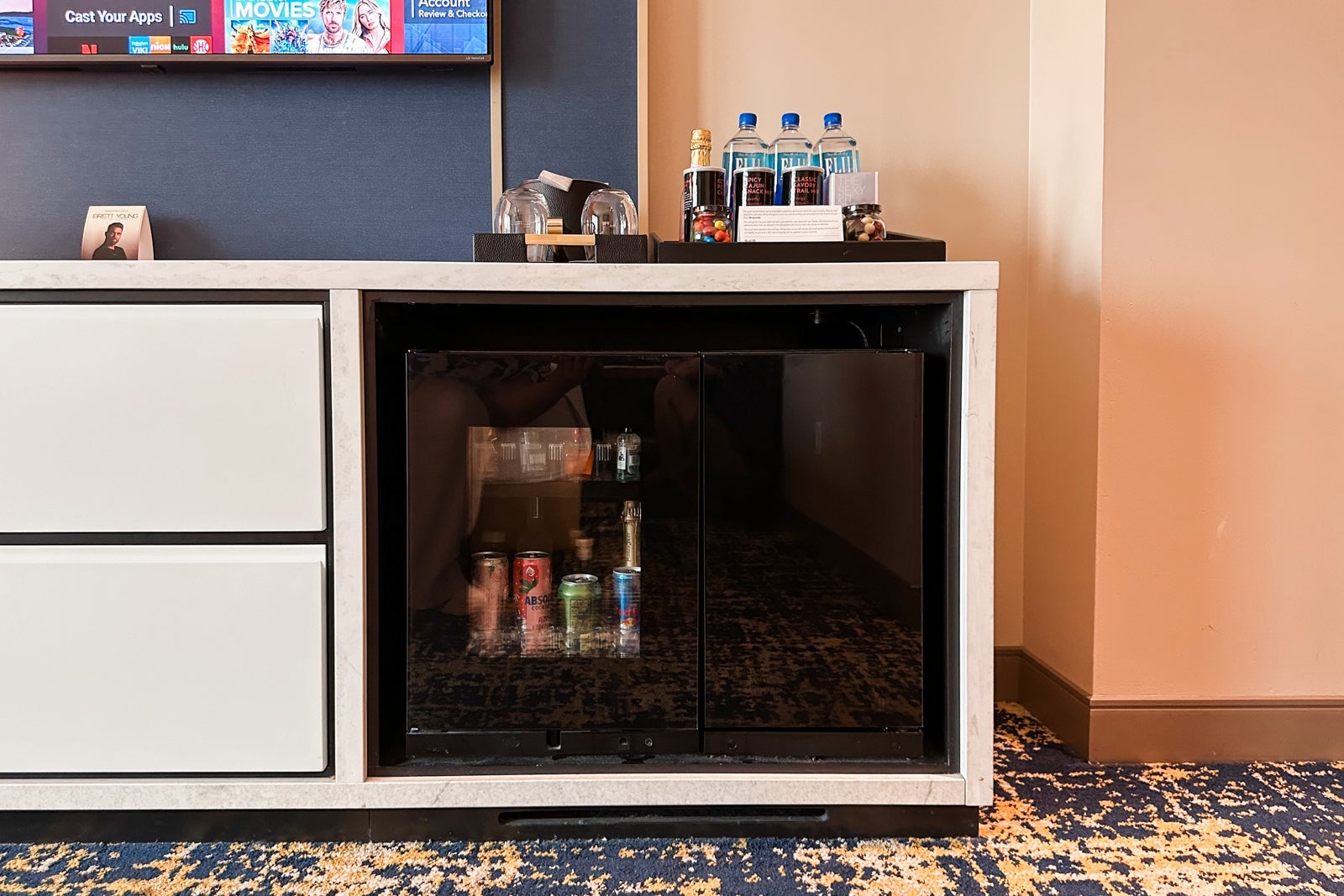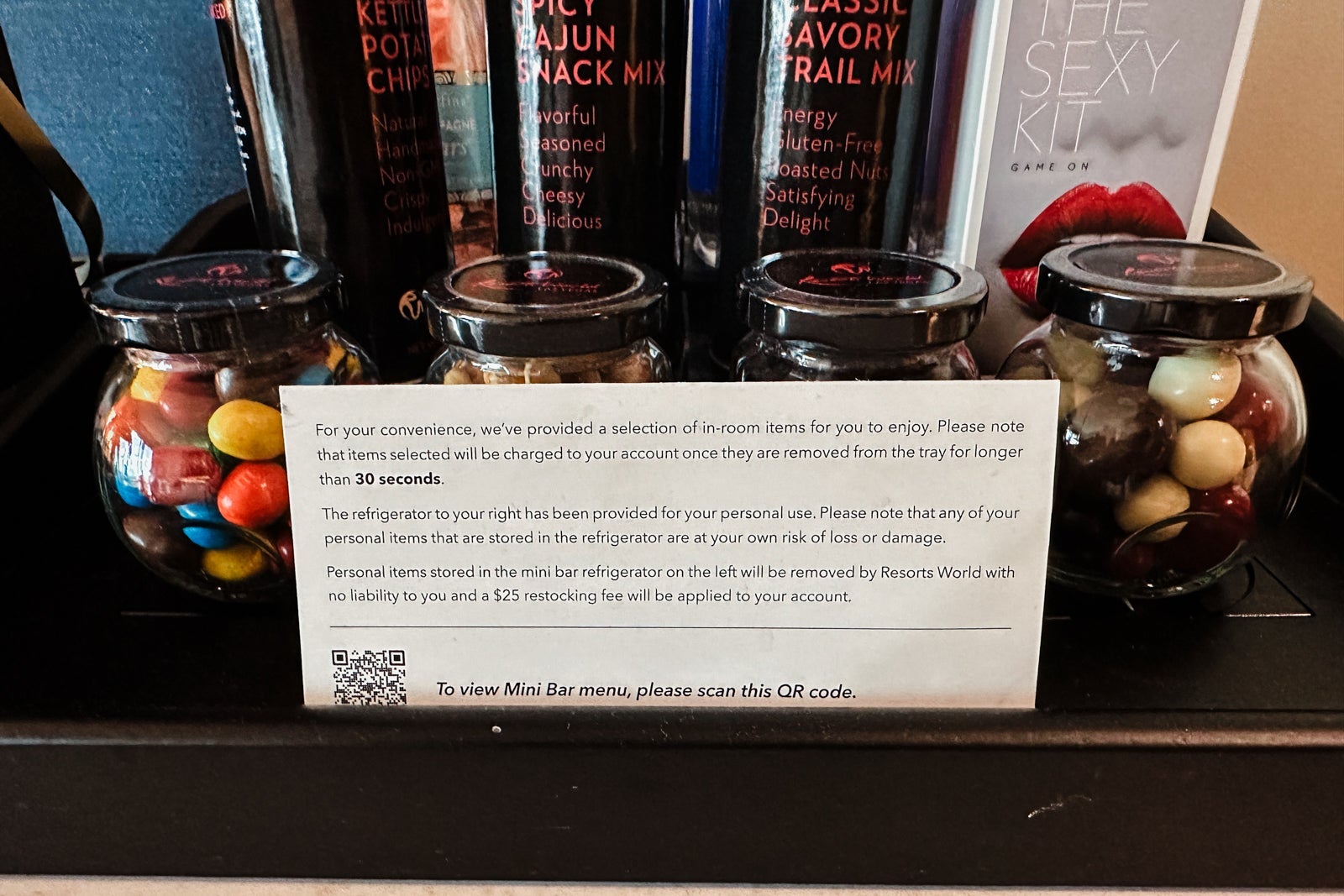 I also had access to a digital in-room safe in addition to a standard minibar that sat atop a weight-sensitive shelf and automatically charged items to my room if I removed them from their spot for more than 30 seconds.