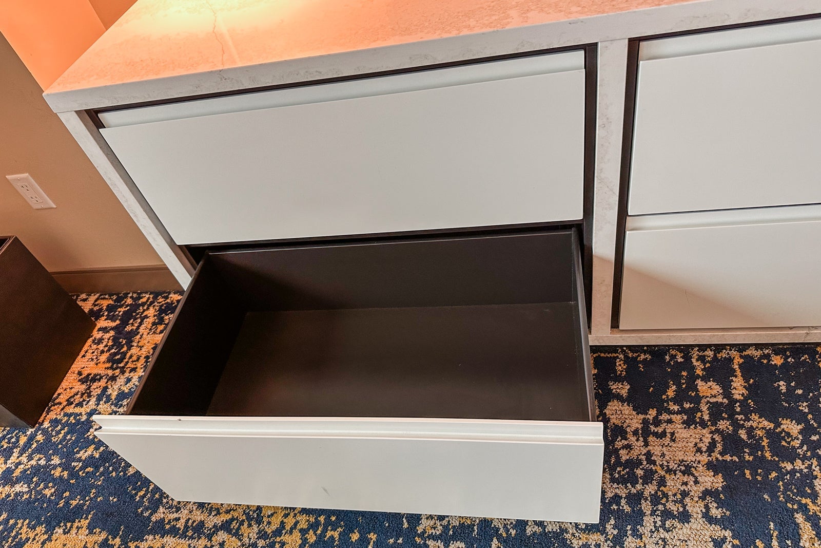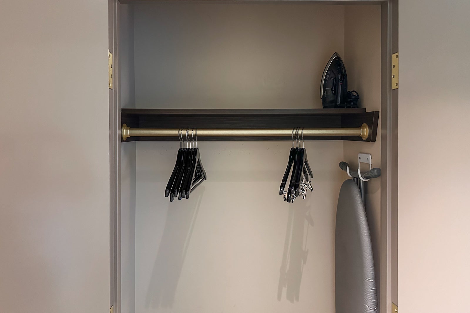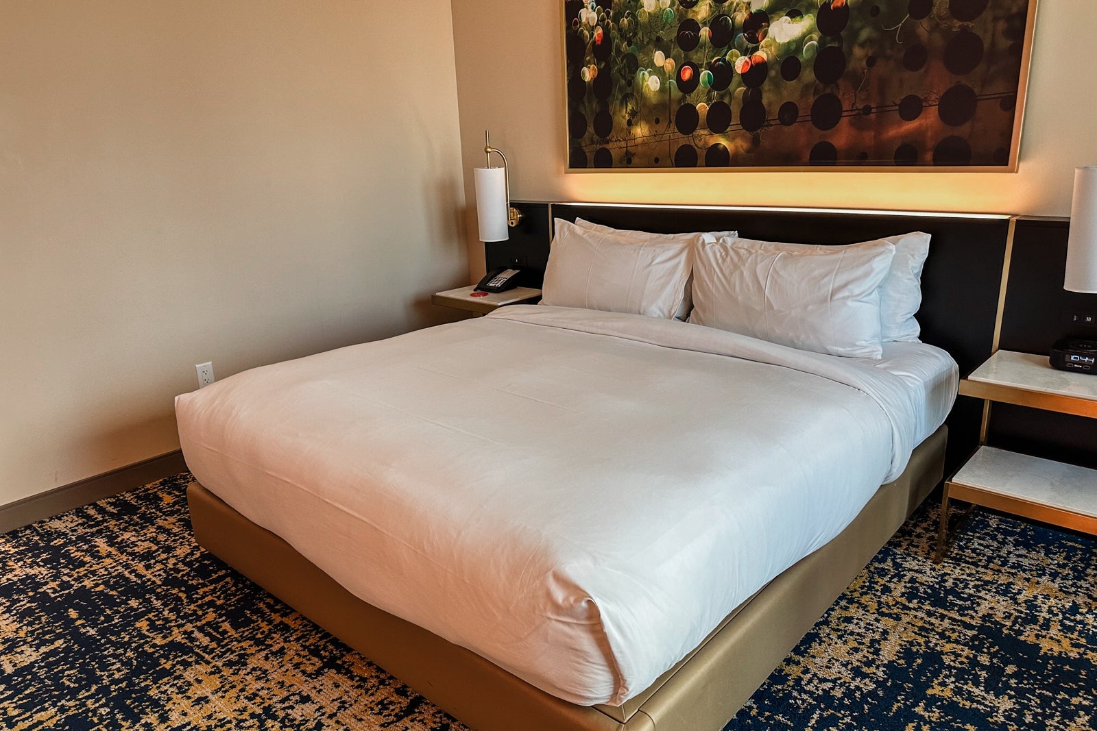The closet — in addition to extra storage space provided by deep drawers — was a decent size for hanging up clothes, and the king bed was slightly plush but firm enough that I didn't completely sink into it, making for a good night's rest.