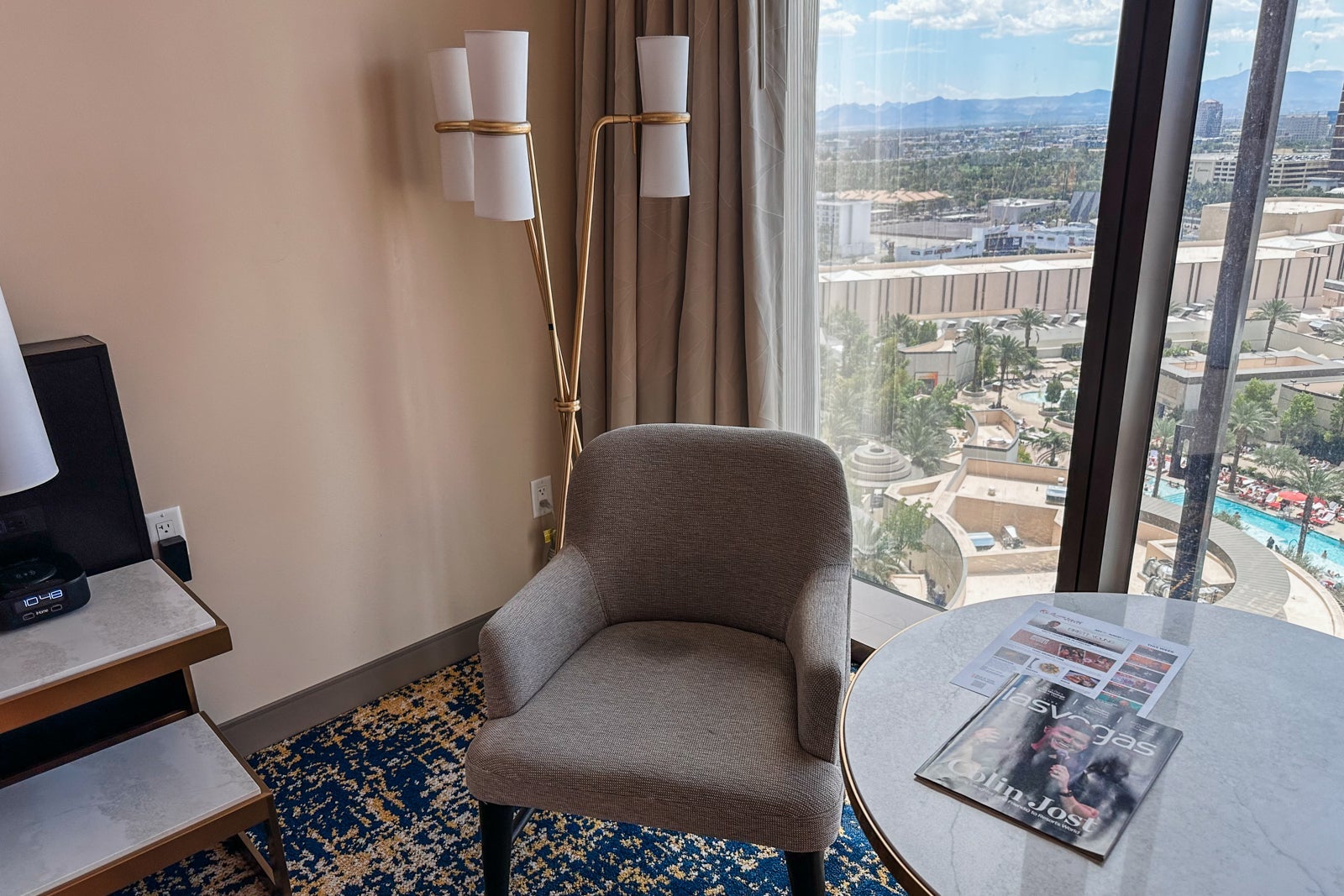 A round table made for a decent workspace, though there were no nearby outlets for my laptop. Generally, the dark decor throughout the room felt a bit heavy and at odds with the bright, sunny Las Vegas weather I experienced during my stay.