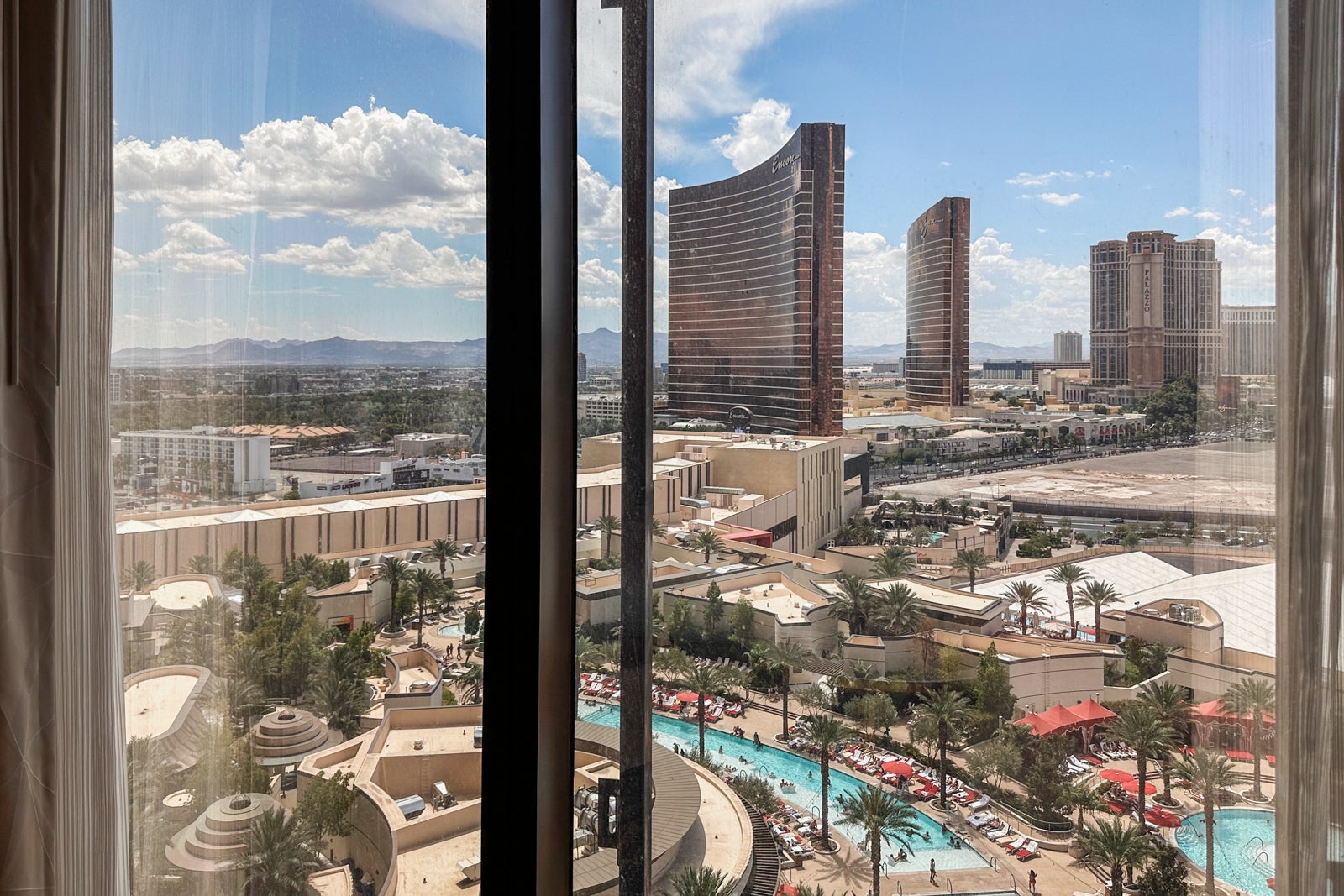 The view from my deluxe Strip-view room was spectacular, though the room itself felt a bit drab.