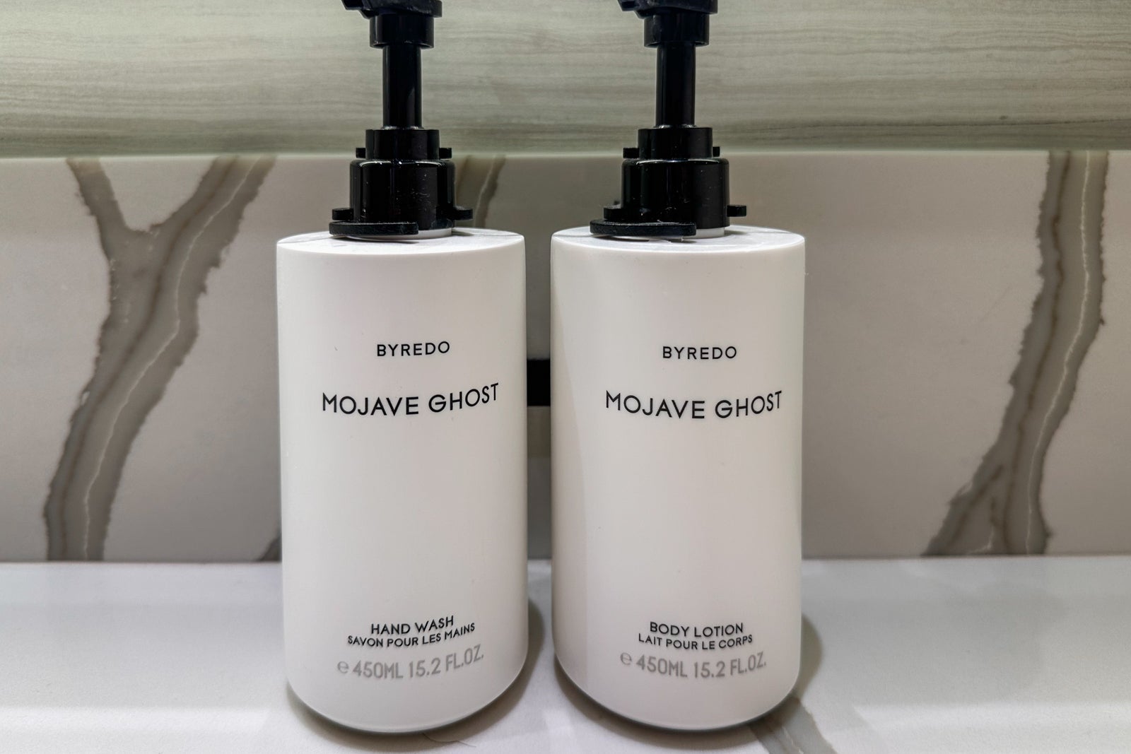 The brass bathroom fixtures dated the space and contrasted with the otherwise modern-looking design. The Byredo toiletries in the bathroom offered a nice touch of luxury and smelled fantastic (the scent, Mojave Ghost, was the same for the hand soap, lotion, shampoo, conditioner and body wash).