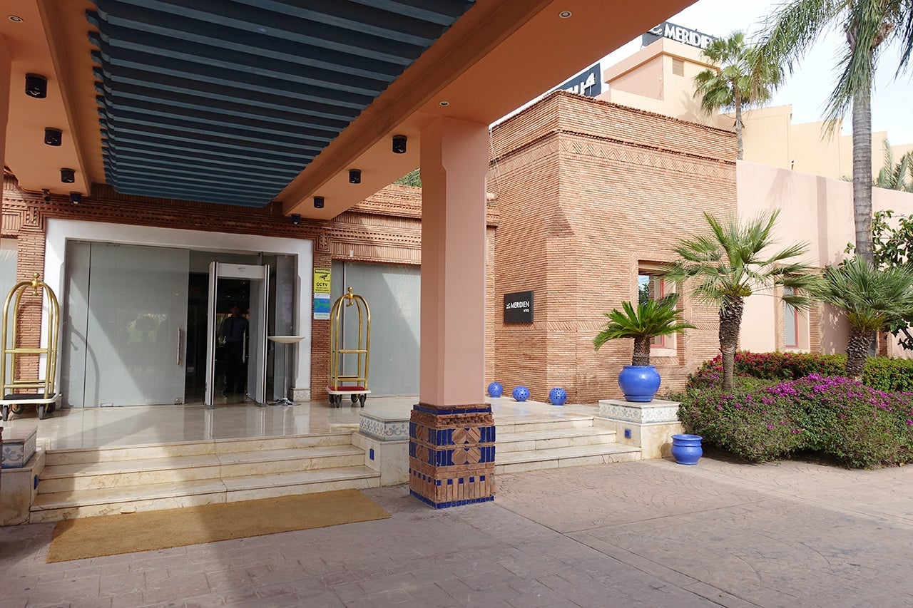A friendly driver was waiting for me at Marrakech Menara Airport (RAK). Upon arrival at the Le Meridien N'Fis, the van was quickly checked by security, and a porter immediately unloaded my bags and took them inside. Guests had to walk through a metal detector, but it didn't slow anything down — I was never asked to stop or to have my bag searched.