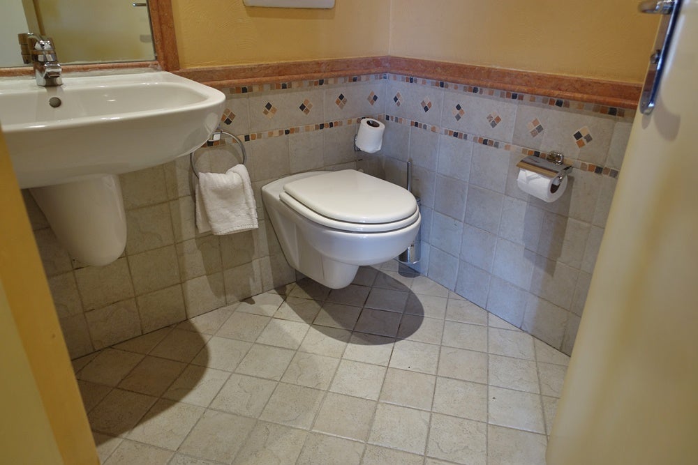 The hair dryer was small and rather weak. The powder room, which was off of the living room, had a sink and toilet.