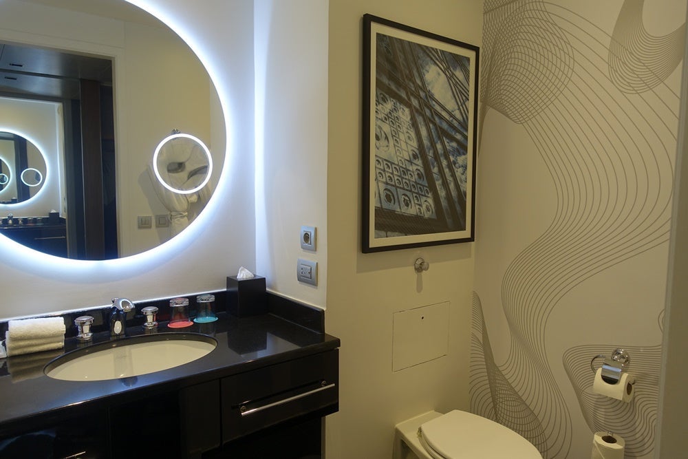There was a toilet but no bidet — which I thought was strange for a European hotel — and a large mirror over the sink. While some storage space was provided, the sink area itself wasn't huge. A powerful blowdryer was in the bathroom drawer, which was great because sometimes hotel dryers, especially the ones mounted to the walls, are weak and it takes ages to dry your hair.