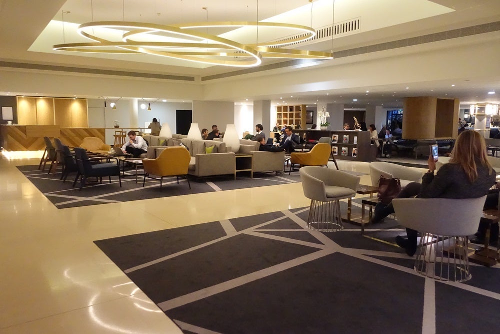 While the outside of the property was gray and rather dreary, the inside was the complete opposite. With a sort-of American open-concept look, the lobby was huge and welcoming, leading into lots of seating, a coffee bar and, farther back, a bar and restaurant.