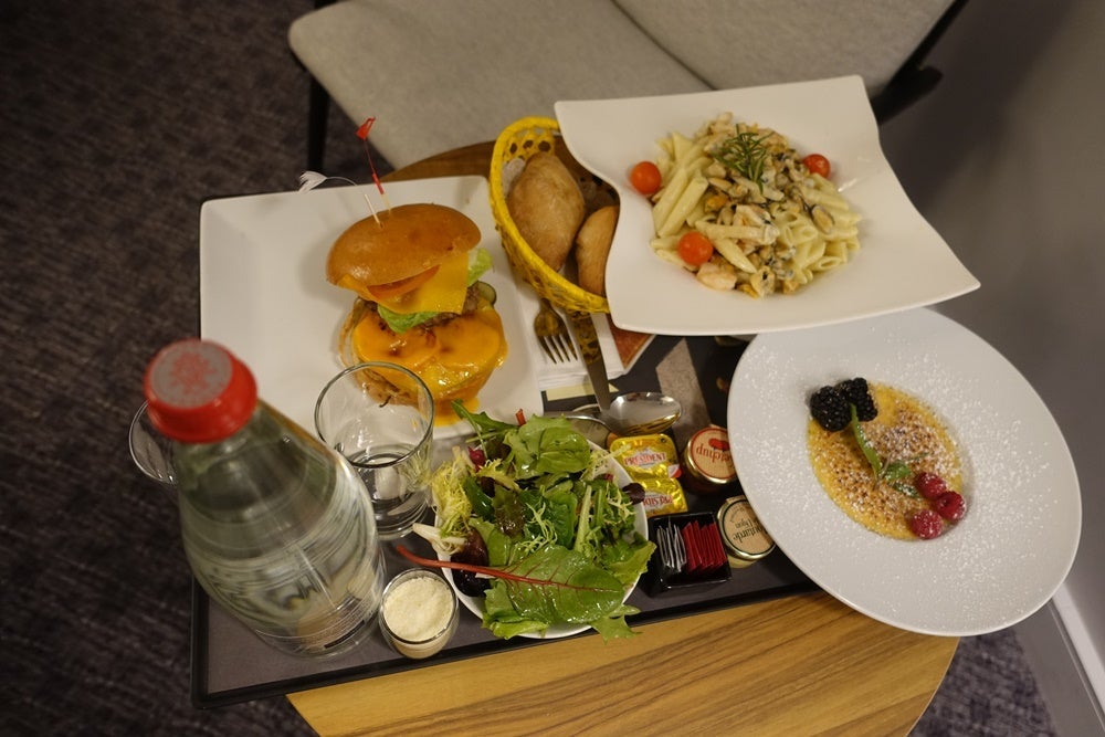 The mall across the street also had breakfast options if you didn't want to go too far. I wasn't able to try the hotel restaurants, but I did order room service, sampling the seafood pasta and the cheeseburger, which were both average at best. It was also overpriced, as room service often is. Dessert was crème brûlée, and it was delicious, with fresh fruit and powdered sugar sprinkled on top. Looking back, I should have simply ordered a few of those.