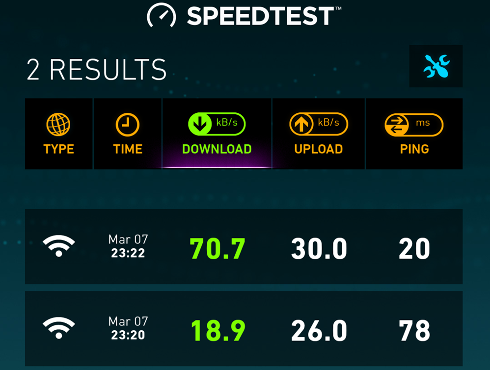 The hotel offered in-room spa services, and the Wi-Fi was free for SPG members who booked through the SPG website. However, as an SPG Amex cardholder, I also had access to "premium" internet. In theory, this should have given me faster speeds than the complimentary service you're entitled to for booking directly through Starwood, but I didn't notice a difference and found the internet to be a bit slow at times — plus, the speed varied wildly. For example, using Speedtest.net, I found the downloads to be 70.7 kilobytes per second one minute when only two minutes earlier, it had been 18.9 KB per second!