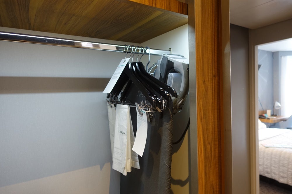 The closet also had hangers, a fancy iron (which heated up very quickly) and an ironing board.