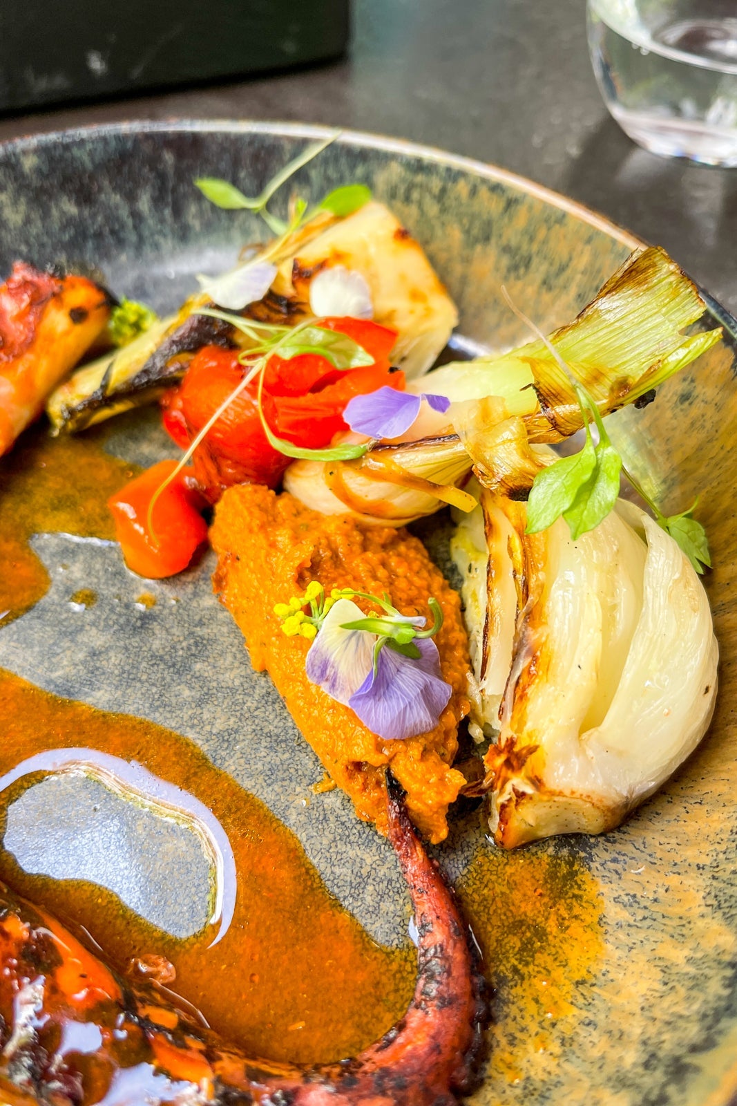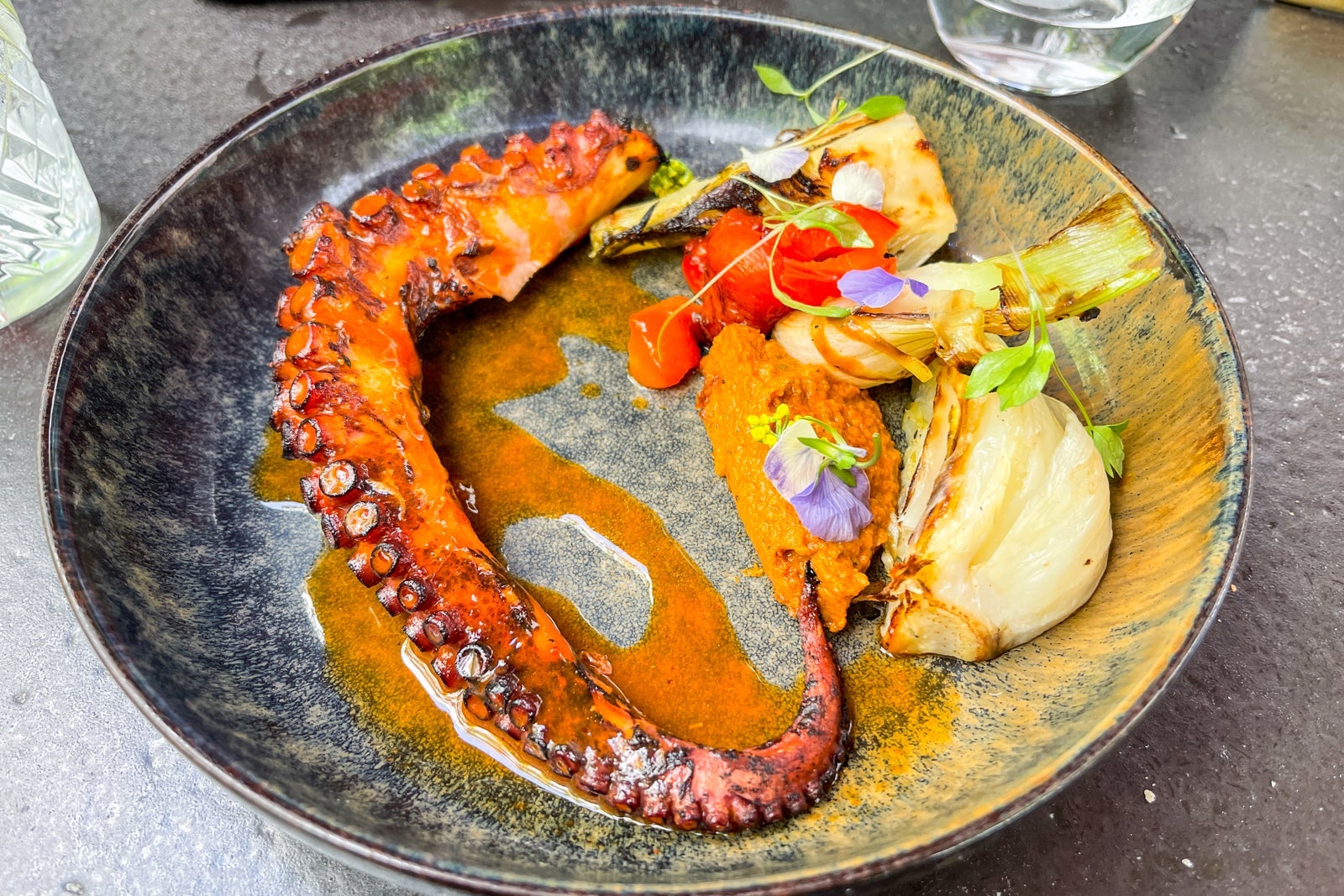 I had the grilled octopus for my entree, which was nothing short of incredible. The fennel and smokiness from the wood-burning grill made the dish really pop. My waiter also gave me a complimentary pour of red wine to pair with the octopus.