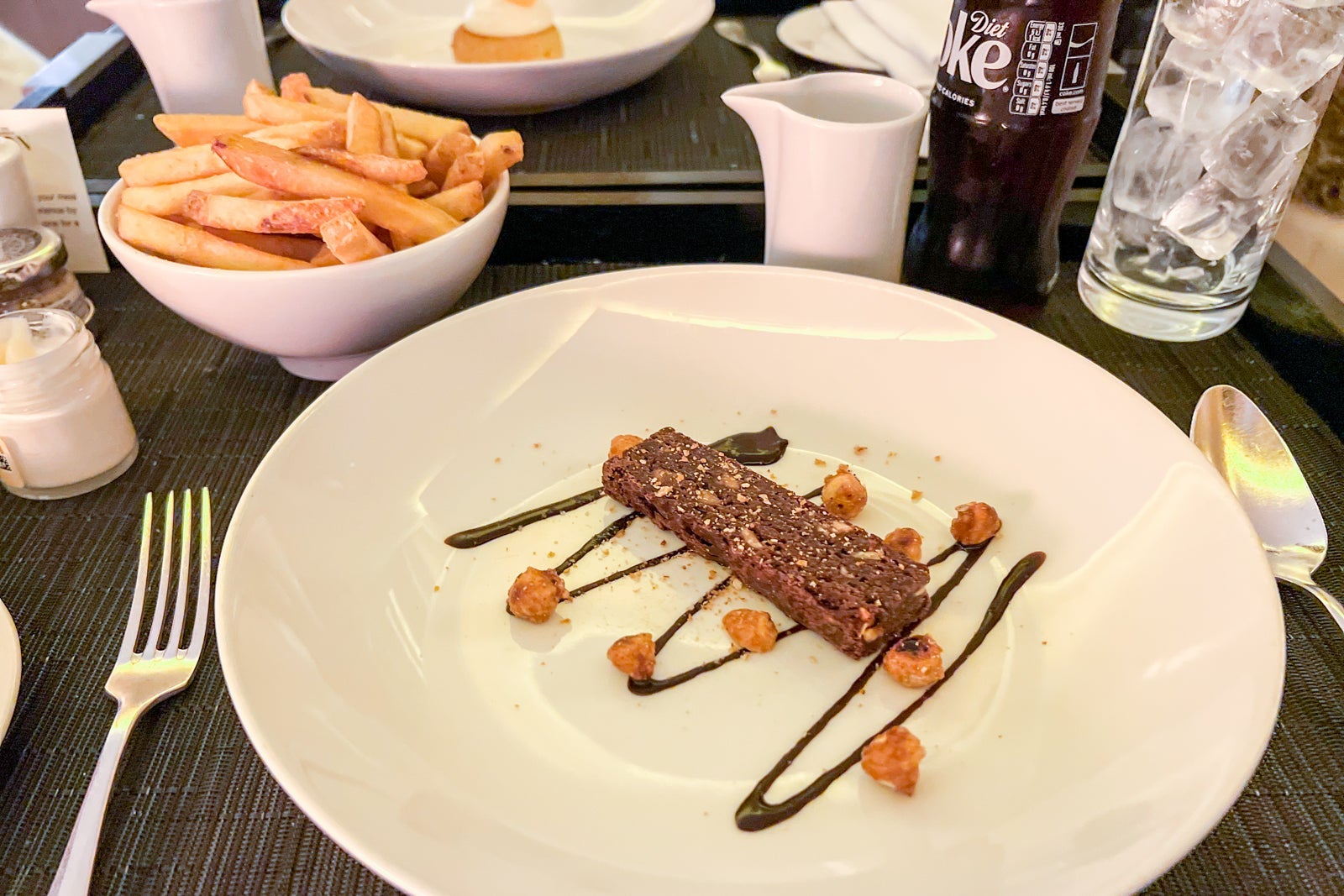 On the last night of our stay, my travel companion and I decided to order a couple of desserts — the orange and almond sponge with mascarpone cream in an orange and vanilla sauce for 14 British pounds ($18) and the hazelnut brownie with vanilla ice cream for 12 British pounds ($15) — off the room service "Night Menu." Both were delicious and exactly what we needed after a night out on the town.