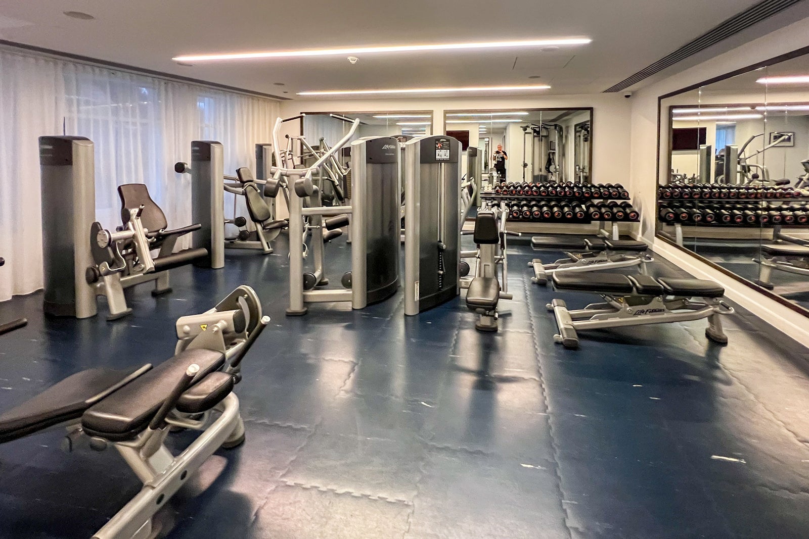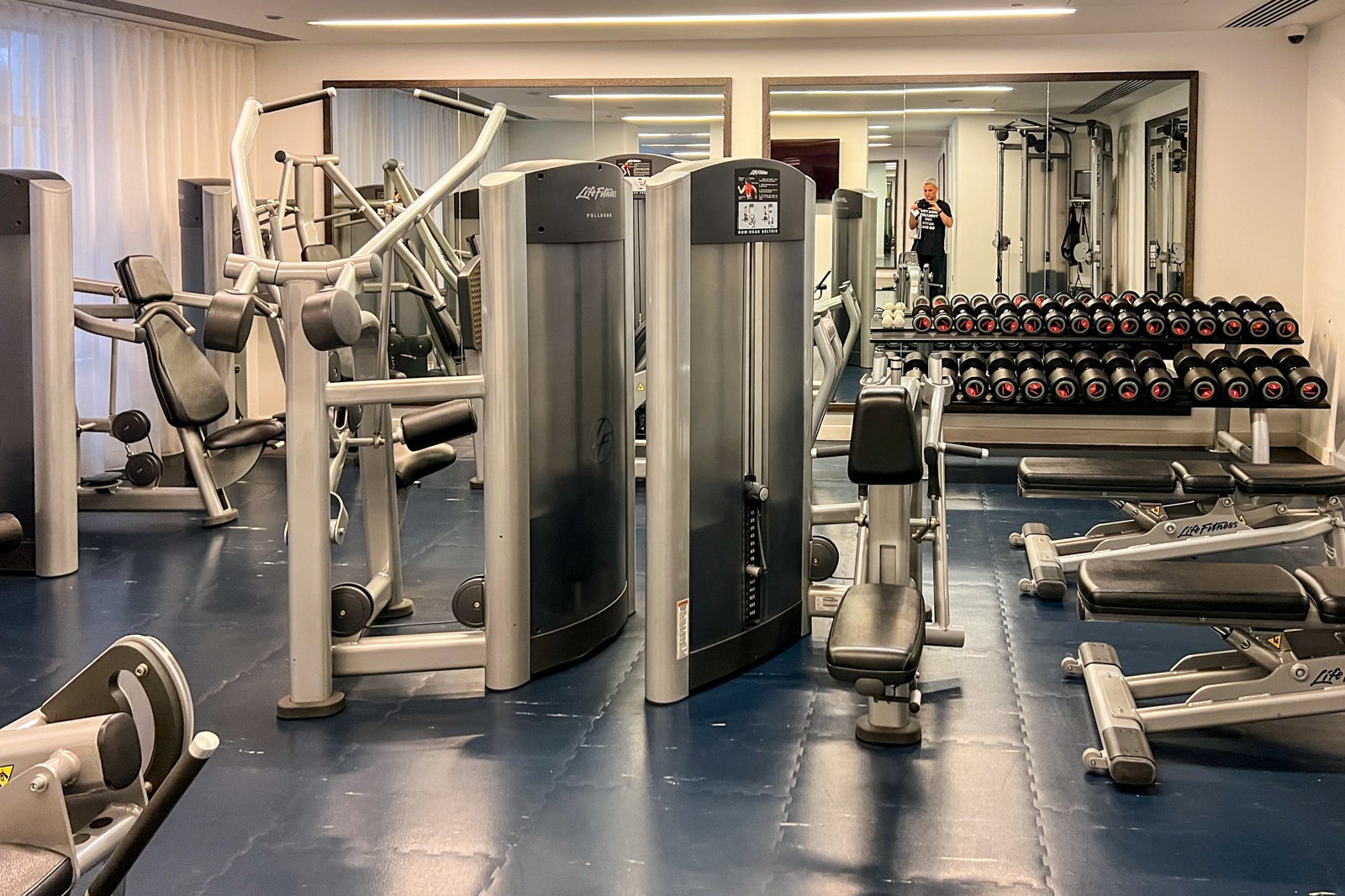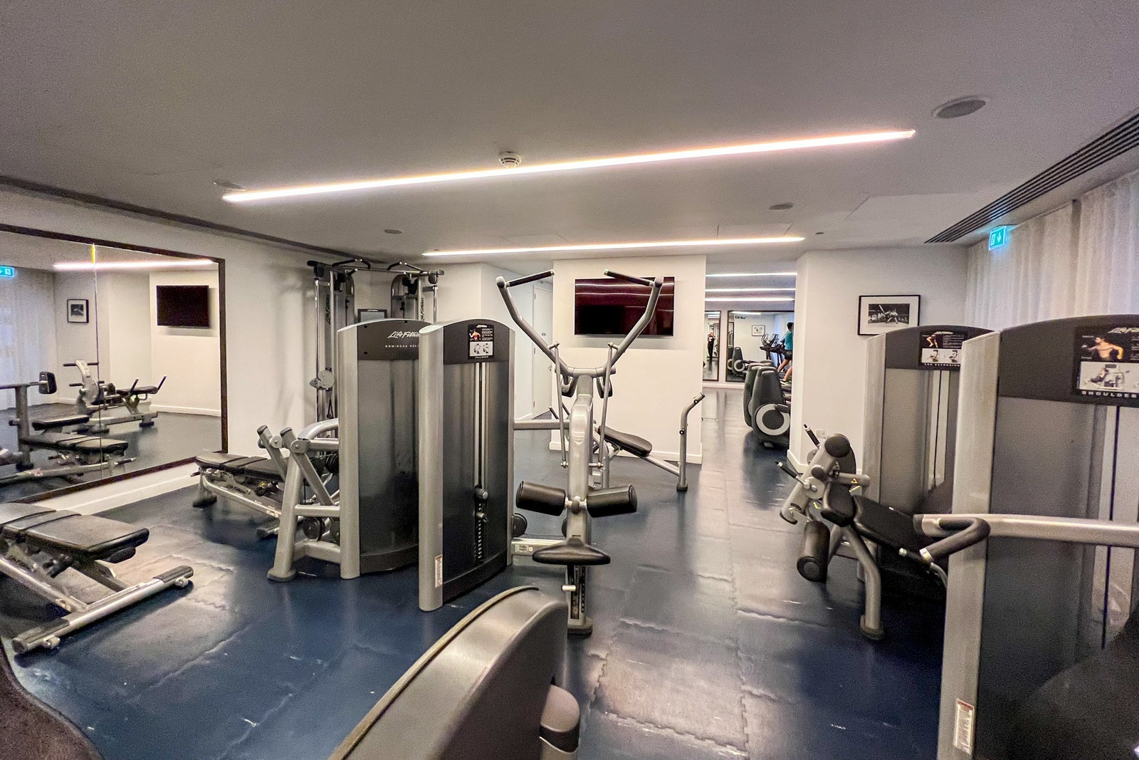 Much like the rooms, the on-site gym felt a bit too compact for my liking, though you'll find enough equipment and machines to get the job done. There are several Life Fitness machines for cardio and weight-training workouts, as well as a selection of free weights.