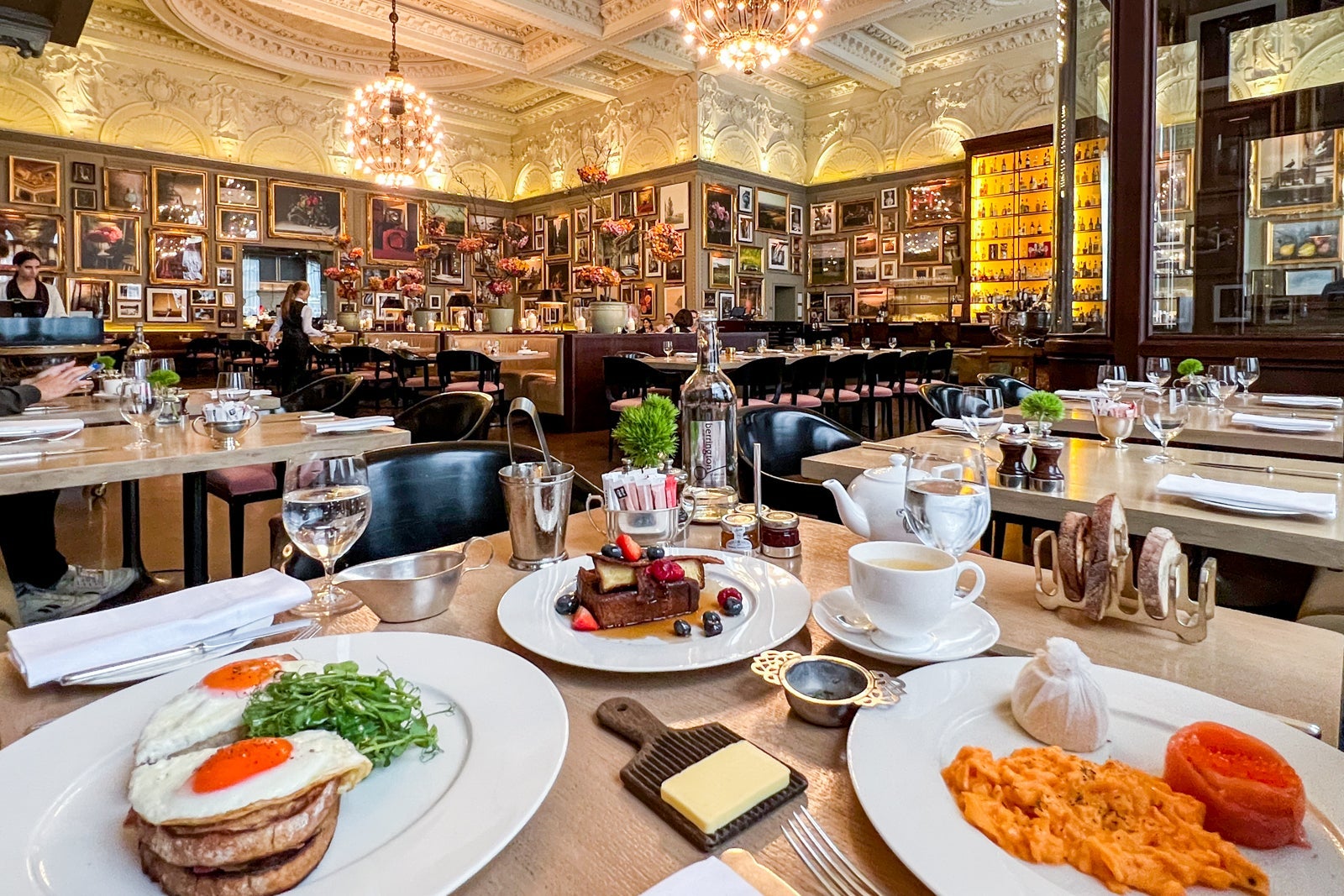 While the delicious comfort food was enough to win me over, what set this restaurant apart from typical breakfast spots was its spectacular environment. The airy venue, which features walls of traditional art and massive chandeliers hanging from beautiful intricate ceilings, has an Old World vibe fitting of the historical building in which it resides.