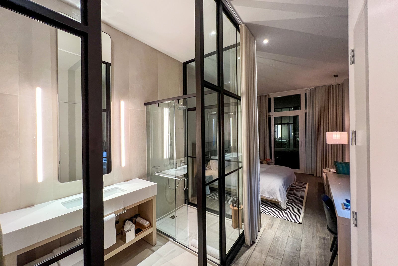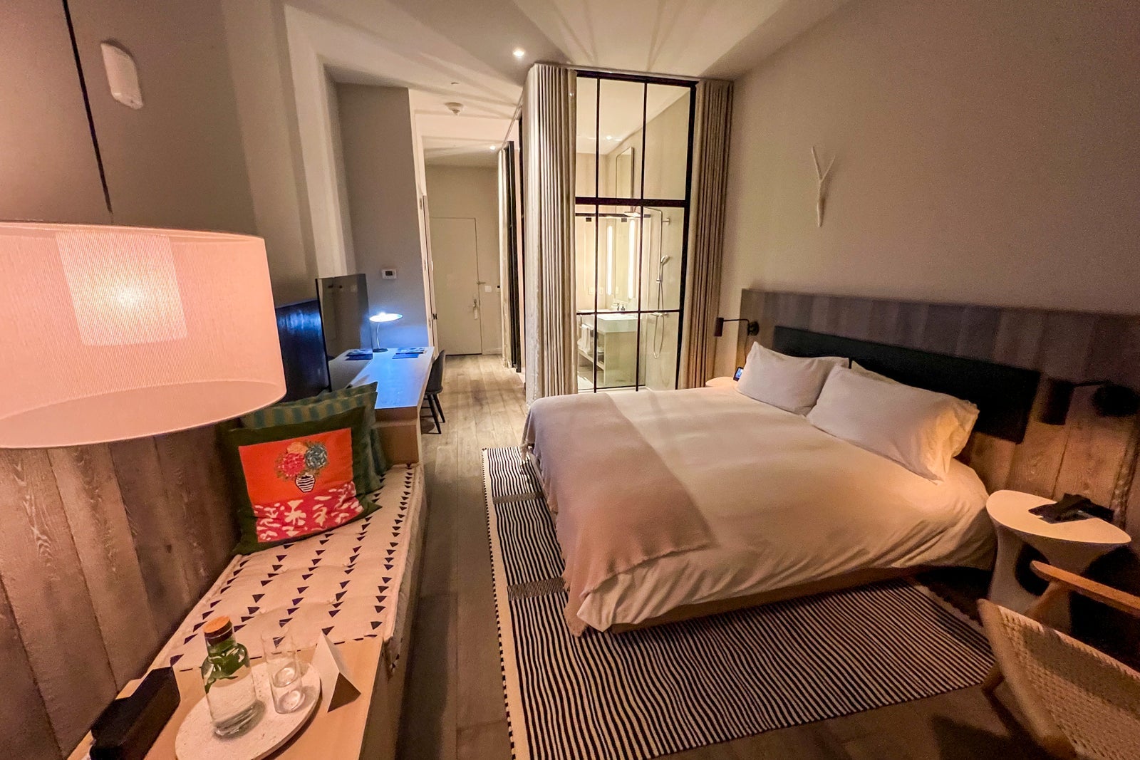 A glass shower and bathroom dominated the room and were the key design feature. It felt like the designers were just trying too hard, and it was odd to have the bathroom as the focal point. Luckily, there were curtains to close it off if you wanted some privacy — something all "trendy" hotels should consider.