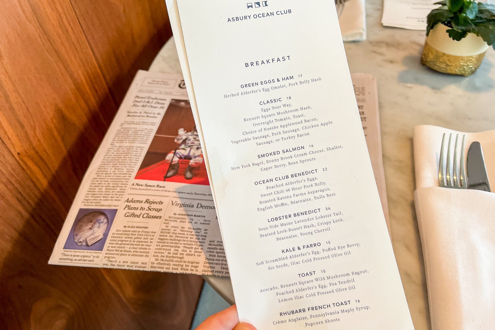 The Asbury Ocean Club Hotel includes a basic continental buffet breakfast in the room rate, but we were able to add on some delicious hot dishes thanks to the FHR program's breakfast credit. (More on that later.)