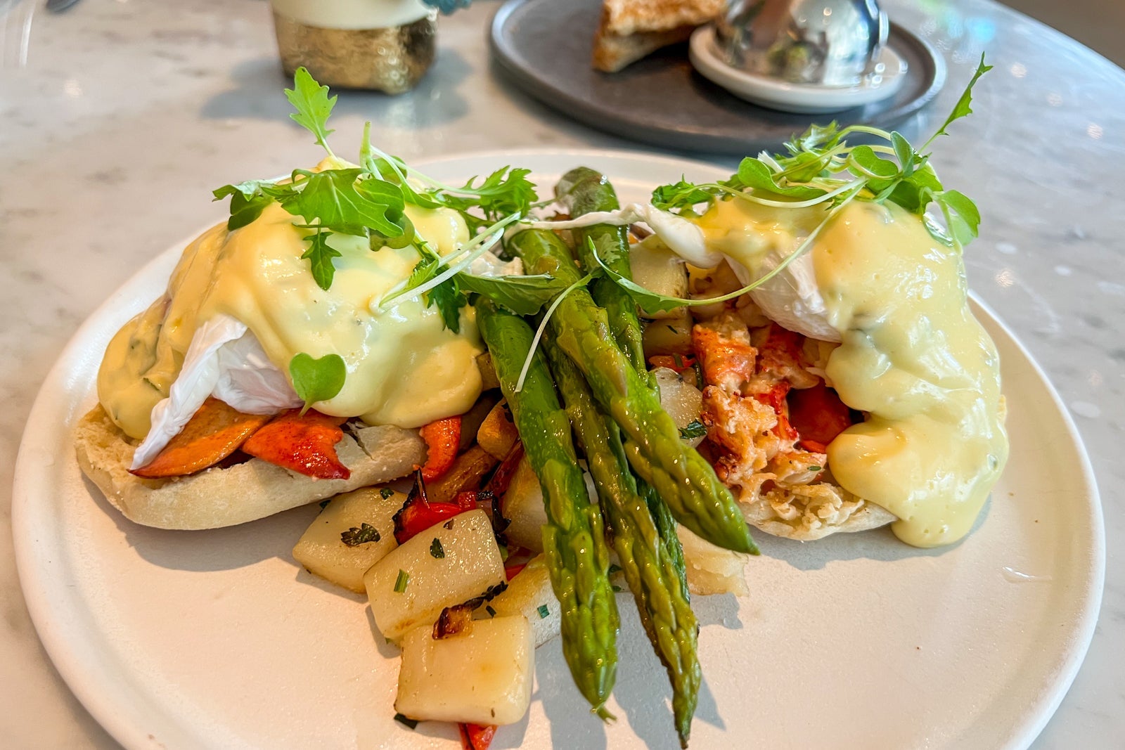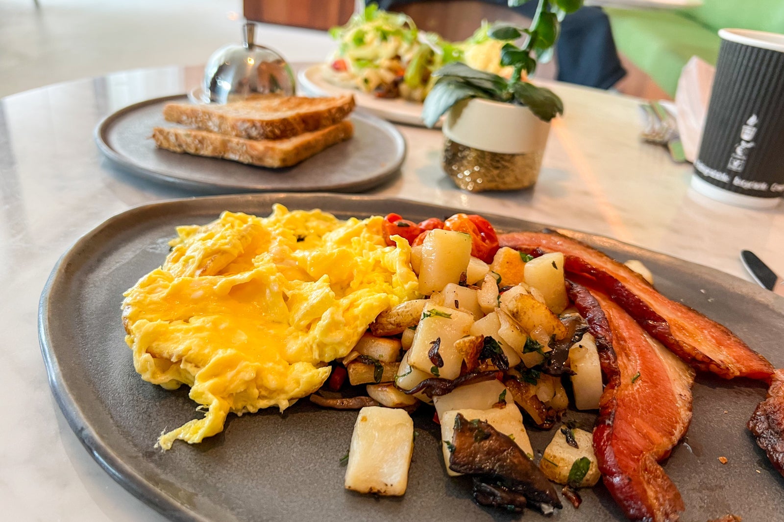 Since we booked via American Express, my wife and I were able to spend up to $60 on breakfast. Classic eggs with a side of bacon or sausage were $18, classic eggs Benedict was $22 and rhubarb French toast was $15.
