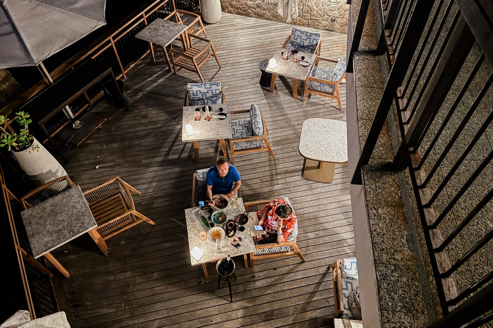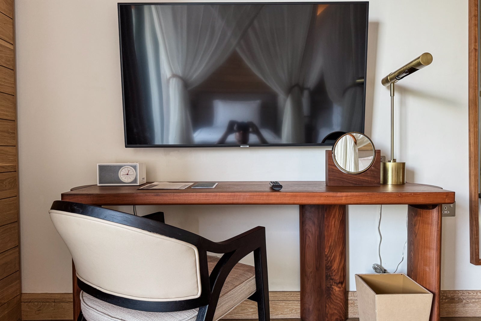 The narrow wooden table under the wall-mounted flat-screen television doubled adroitly as a workspace, though when temperatures were cooler in the mornings and evenings, I took my laptop out onto the private balcony so I could take advantage of the speedy free Wi-Fi as well as the refreshing sea breezes.