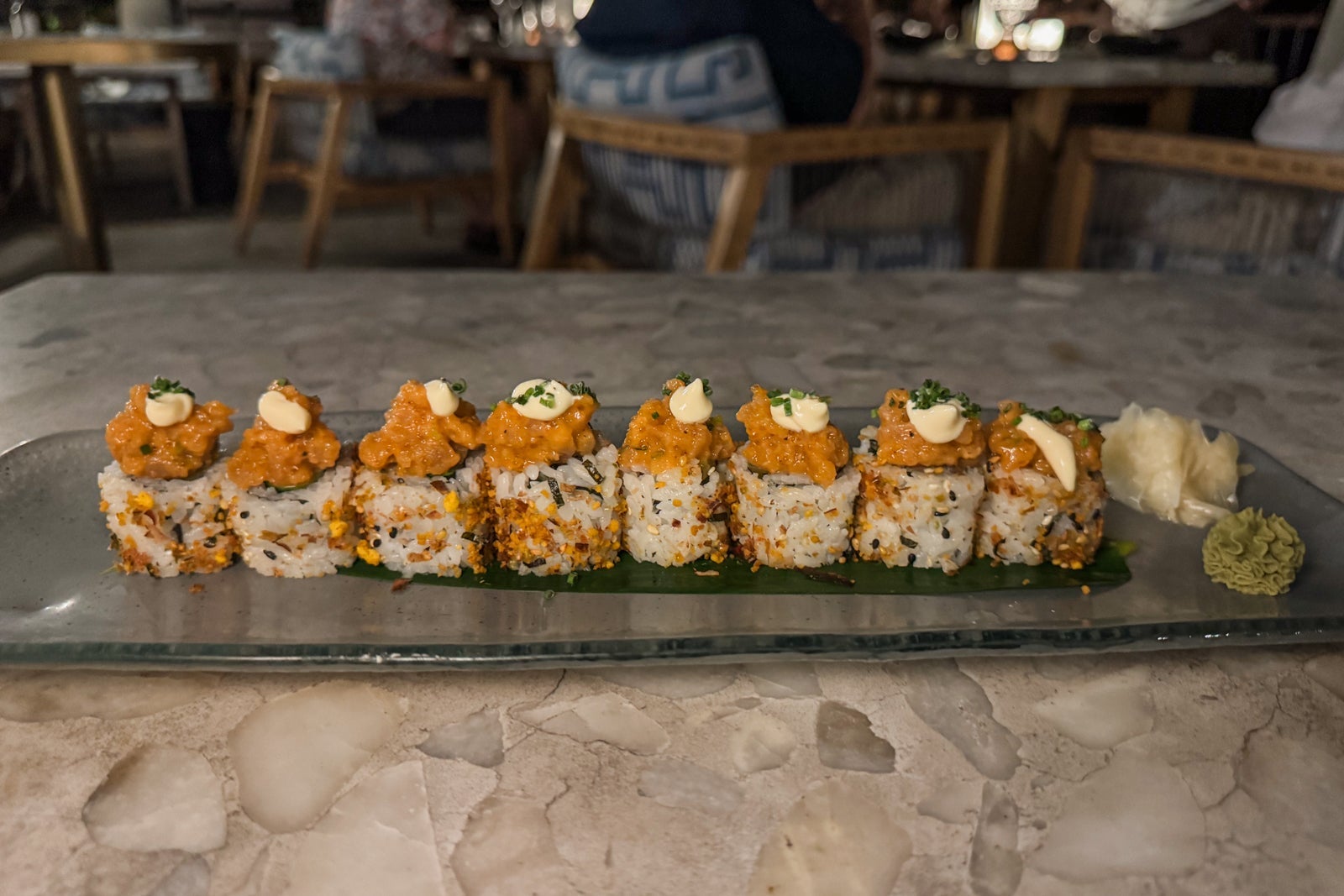 Take advantage of the fresh fish and seafood sourced locally with an outdoor dinner at the hotel's Japanese-inspired restaurant, Azido. You can dive into ultrafresh bluefin tuna sashimi ($49) along with specialties like scallop and tiger shrimp truffle gyoza ($35.50) and heaping hand rolls like a hearty one with soft-shell crab, avocado and cucumber ($31).