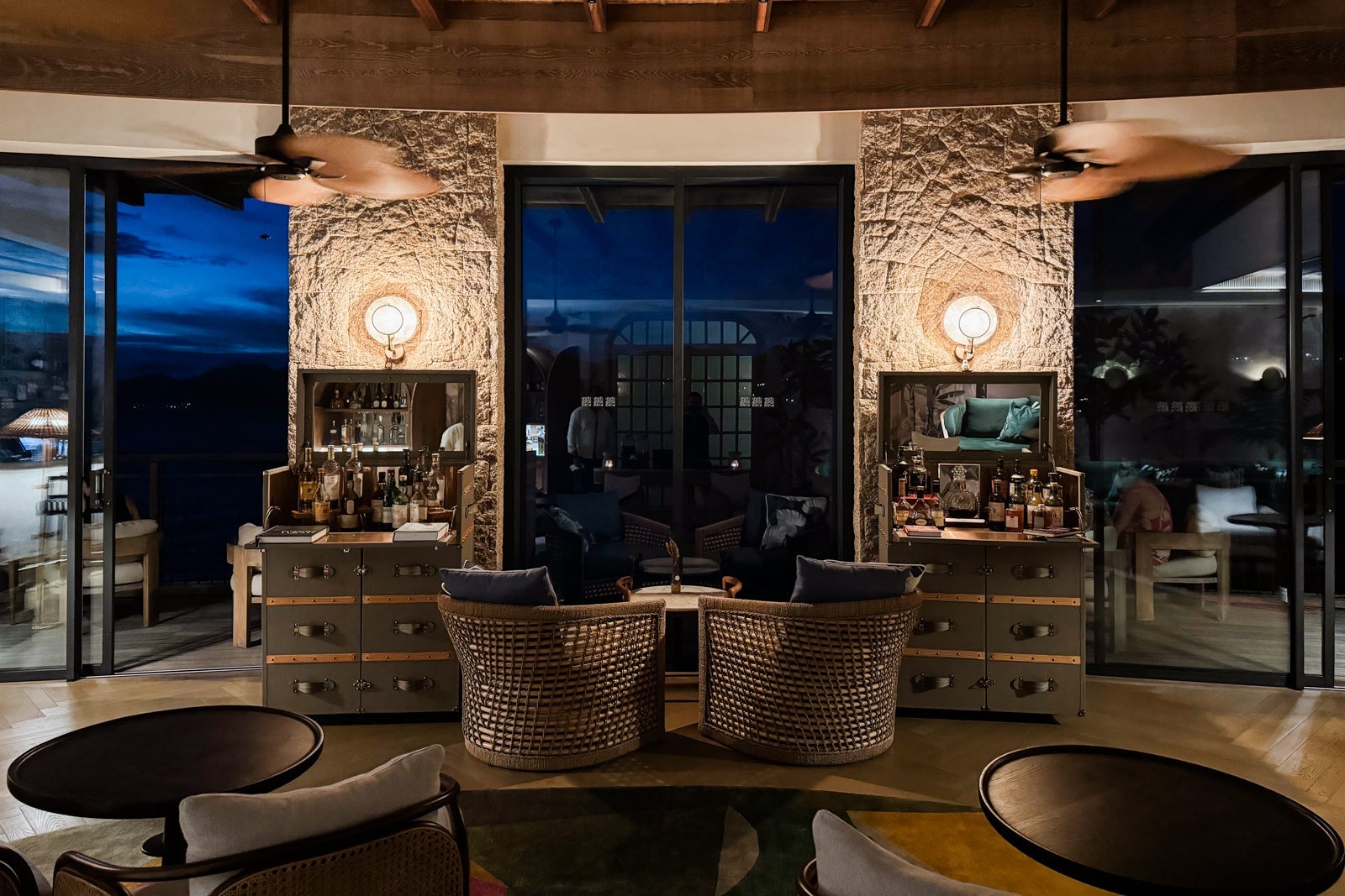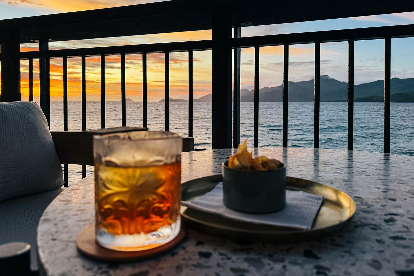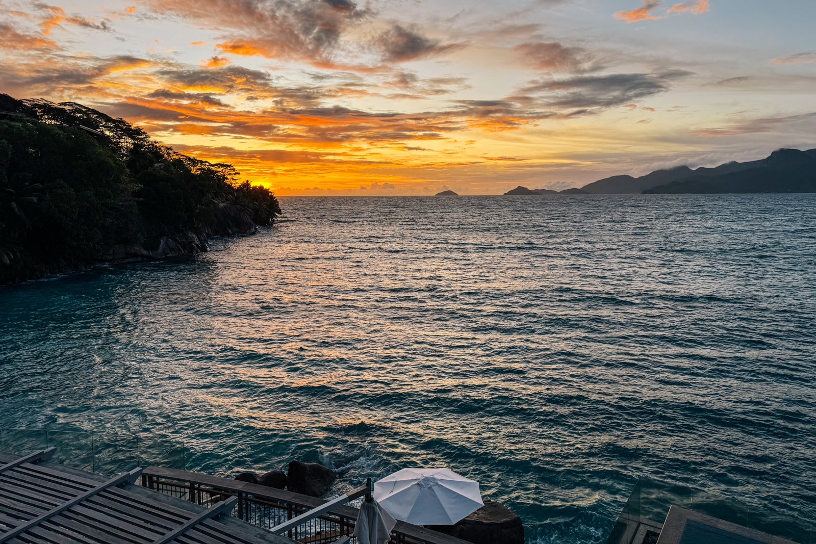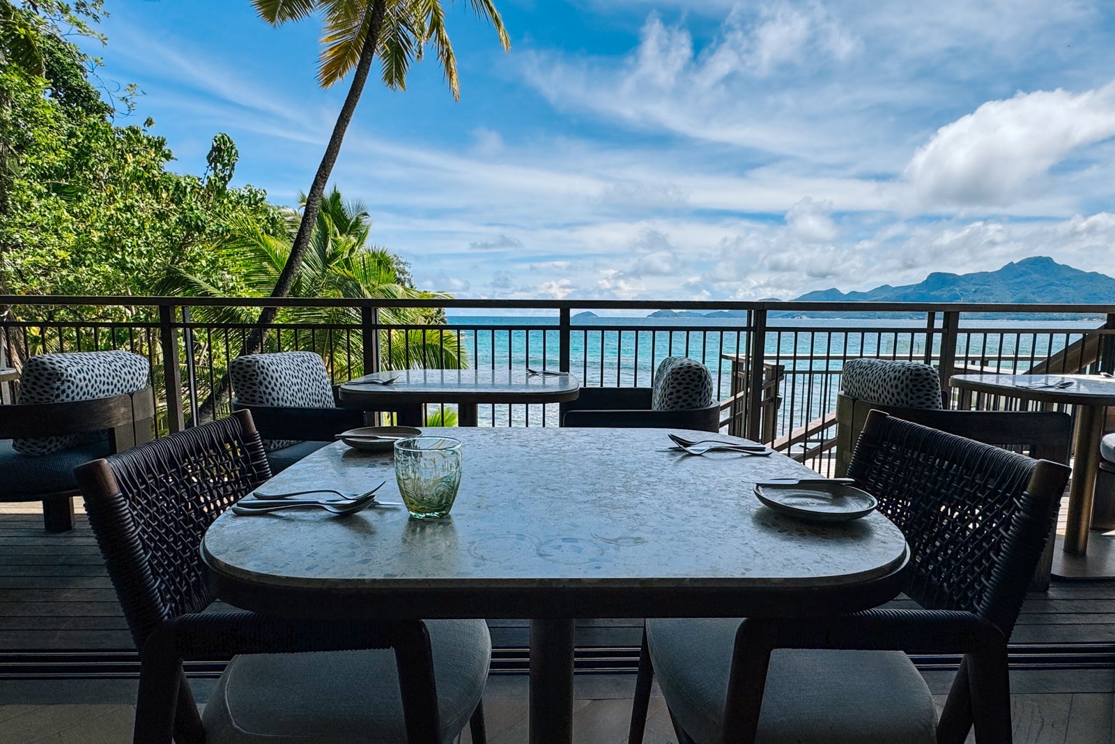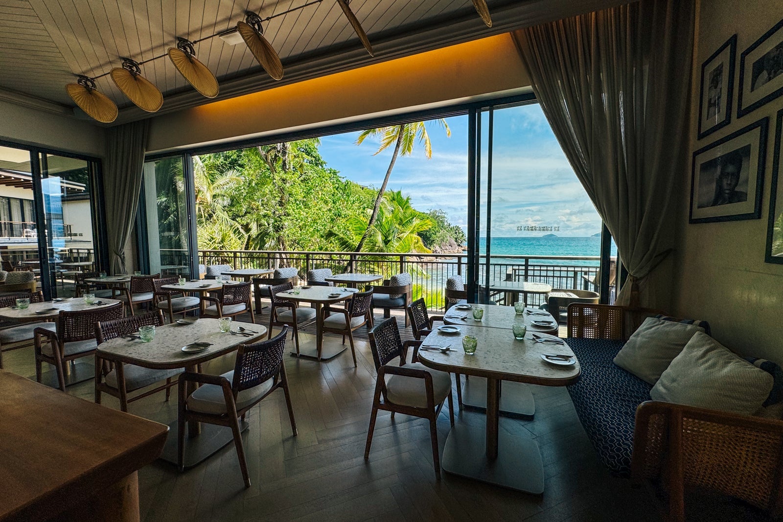 Be sure to check the time for sunset each day so you can snag one of the outdoor tables at Kokoye, the cocktail bar on the floor above reception. Although the interior is artfully decorated with wallpaper showcasing Seychellois flora, wraparound velvet banquettes and wicker furnishings and fans, you'll want one of the balcony tables for those panoramic views.