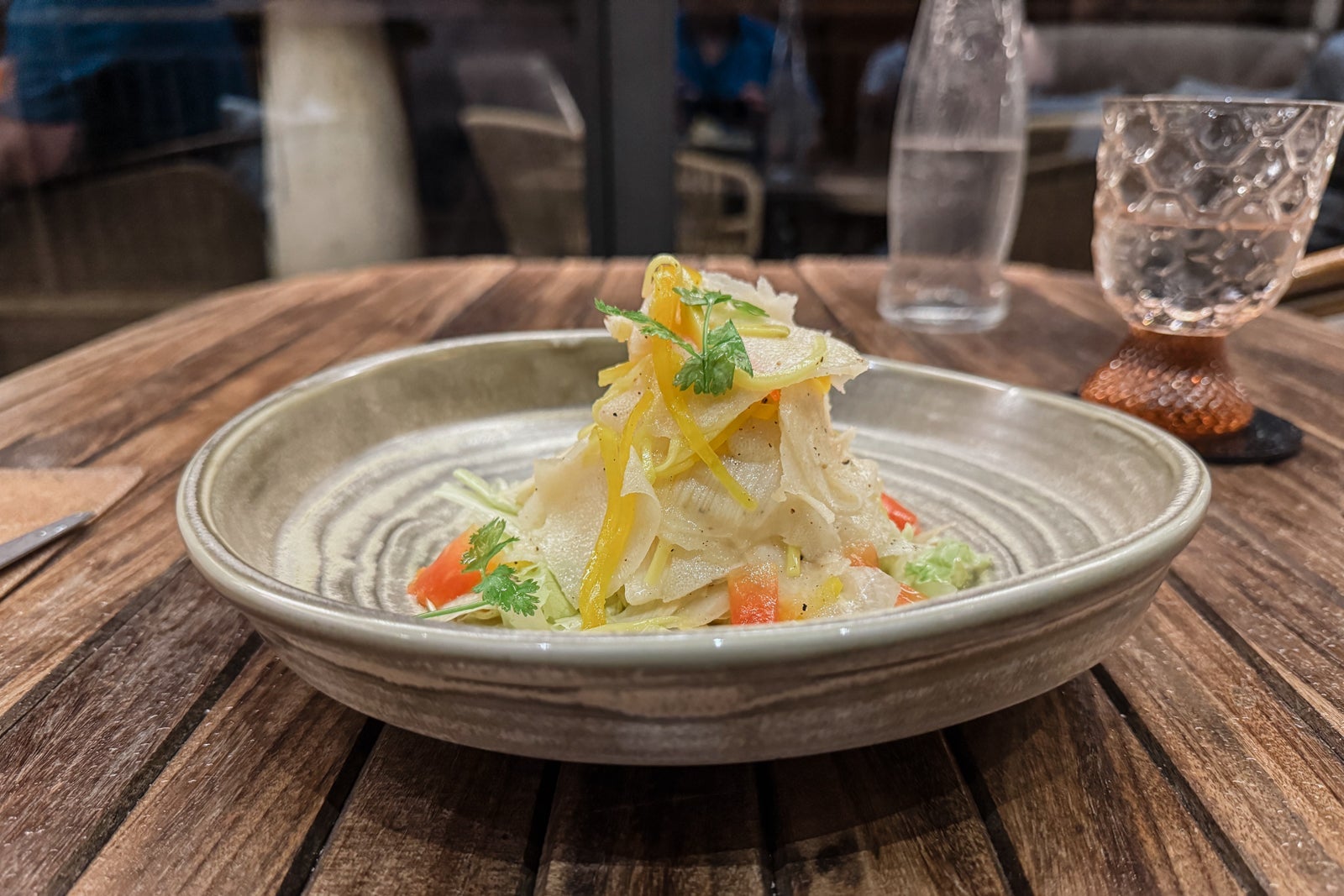 Located by the hotel's eye-shaped main pool near the entrance to the property, Soley Bar is a cute open-air lounge and restaurant where you can enjoy tropical cocktails and light fare from 11 a.m. - 7 p.m. daily. I skipped the drinks since a server brought me an ice bucket filled with water bottles, but I tucked into a tandoori chicken wrap with cucumber and tangy raita sauce ($31) that hit the spot for lunch.