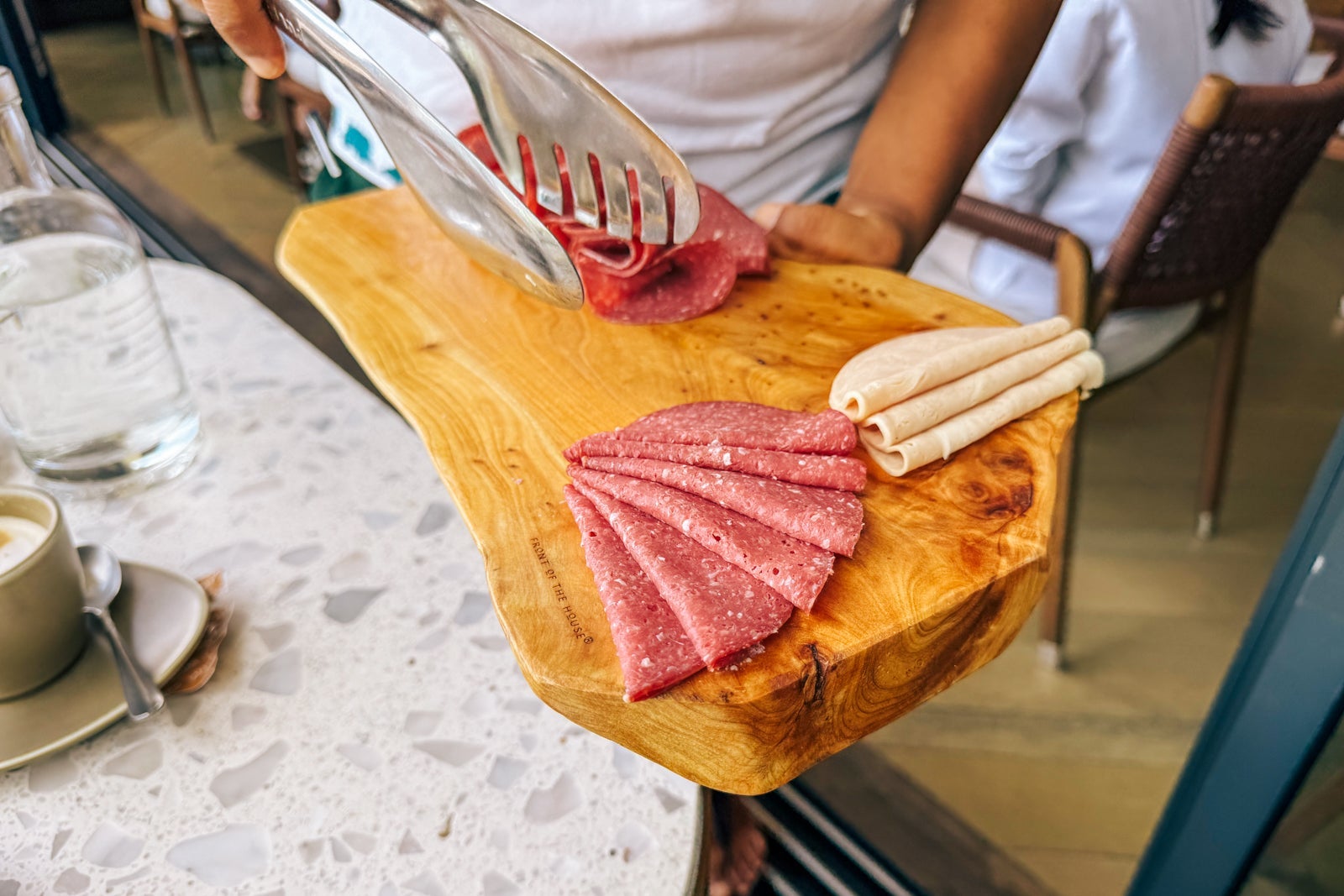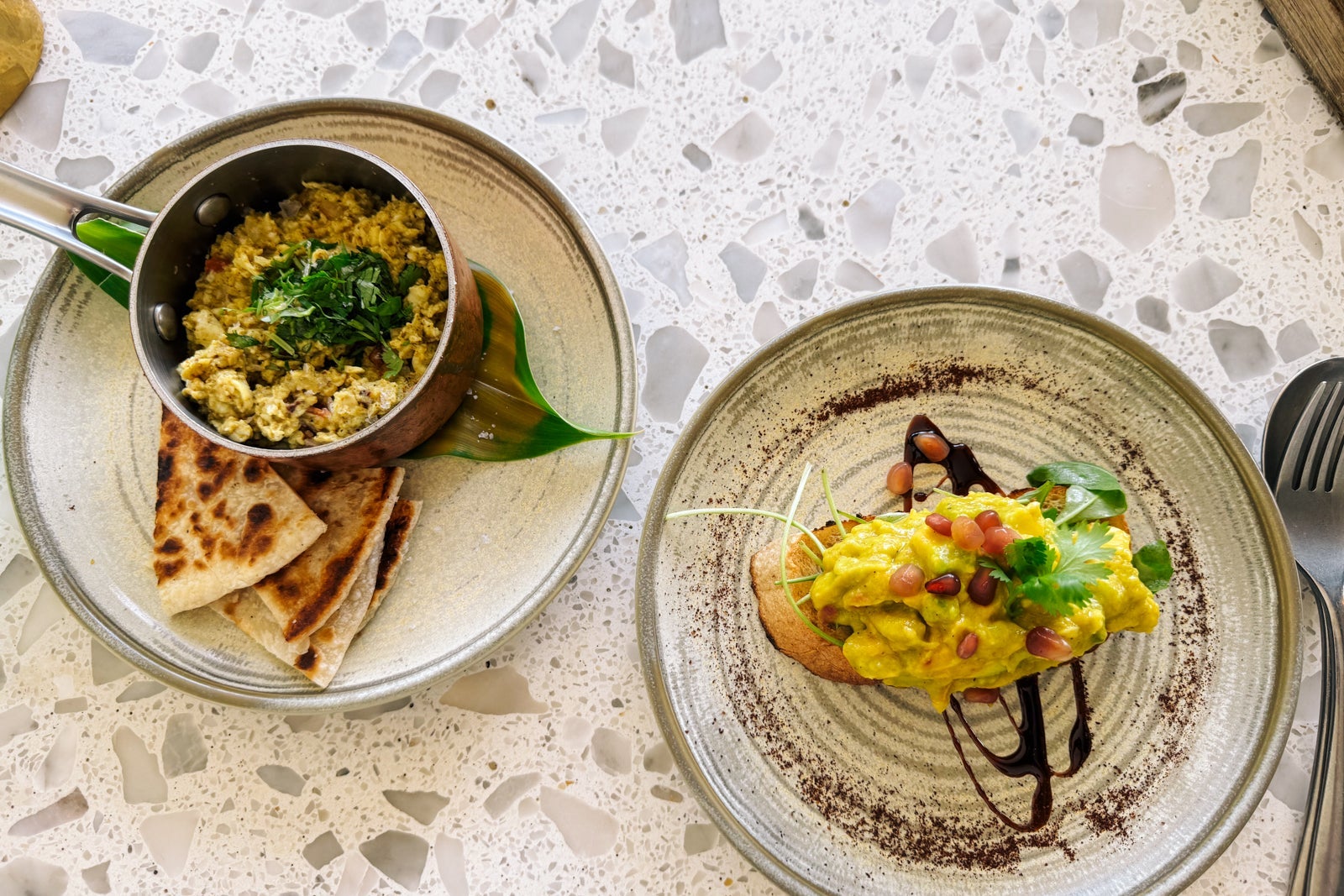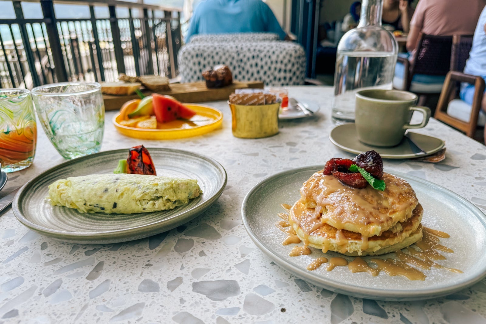 Servers would come around periodically with help-yourself plates of vegetables, charcuterie and cheeses and you could order as many small a la carte dishes as you liked including decadent roasted banana pancakes drizzled in dulce de leche and healthy avocado toast on rye bread with pomegranate.