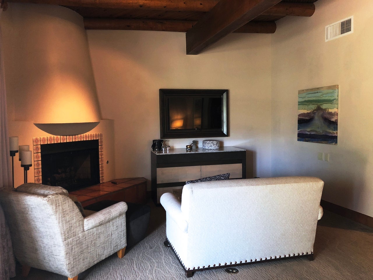 The room was quite nice for two people on a weekend stay, but calling it a suite was generous, as it was simply one room with a seating area near the fireplace. It was an oversized room, to be sure, perhaps a junior suite, but not a true suite in my book. Still, it was comfortable, and the fireplace was a treat on our July visit during the evening monsoons.