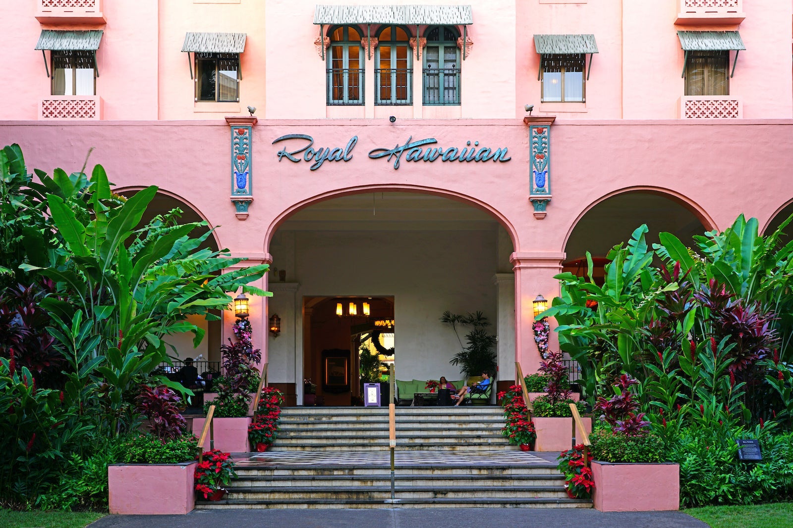 Hawaii's Pink Palace, The Royal Hawaiian, a Luxury Resort Collection property on Waikiki Beach, harks back to the glamorous 1920s. Originally opened in 1927, the hotel still offers a historic wing where guest rooms have dark wood furniture and fuschia and platinum accents, as well as a modern tower with more contemporary accommodations and private balconies (every room in the Mailani Tower has an ocean view).