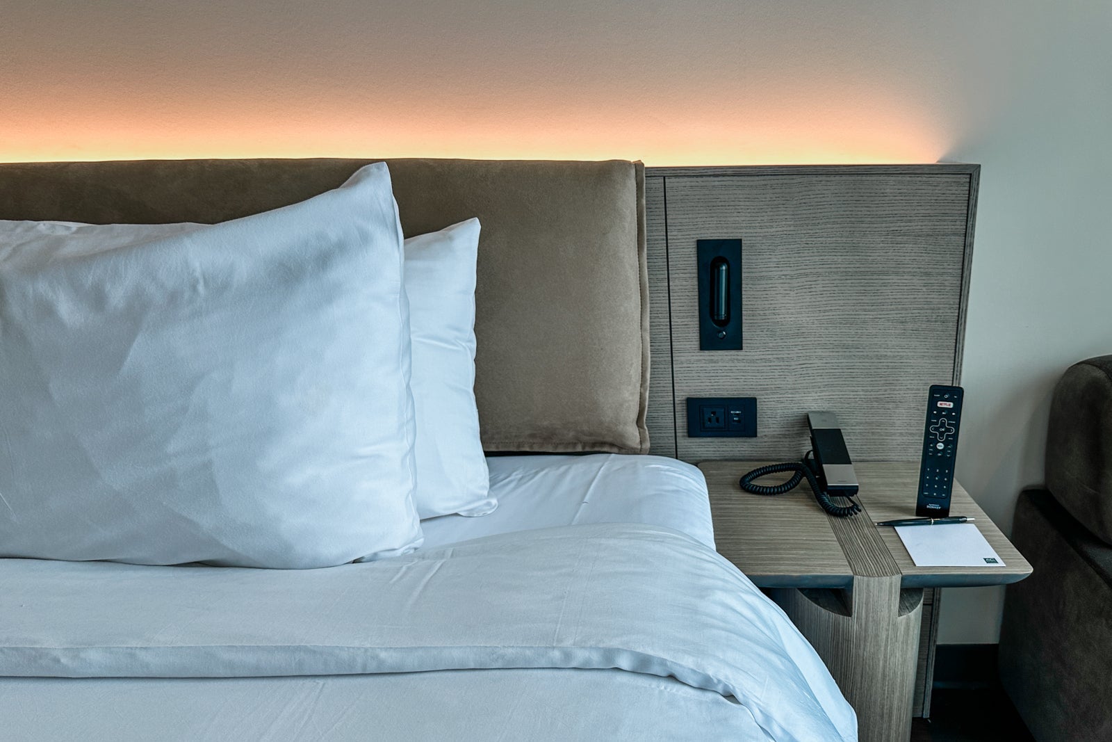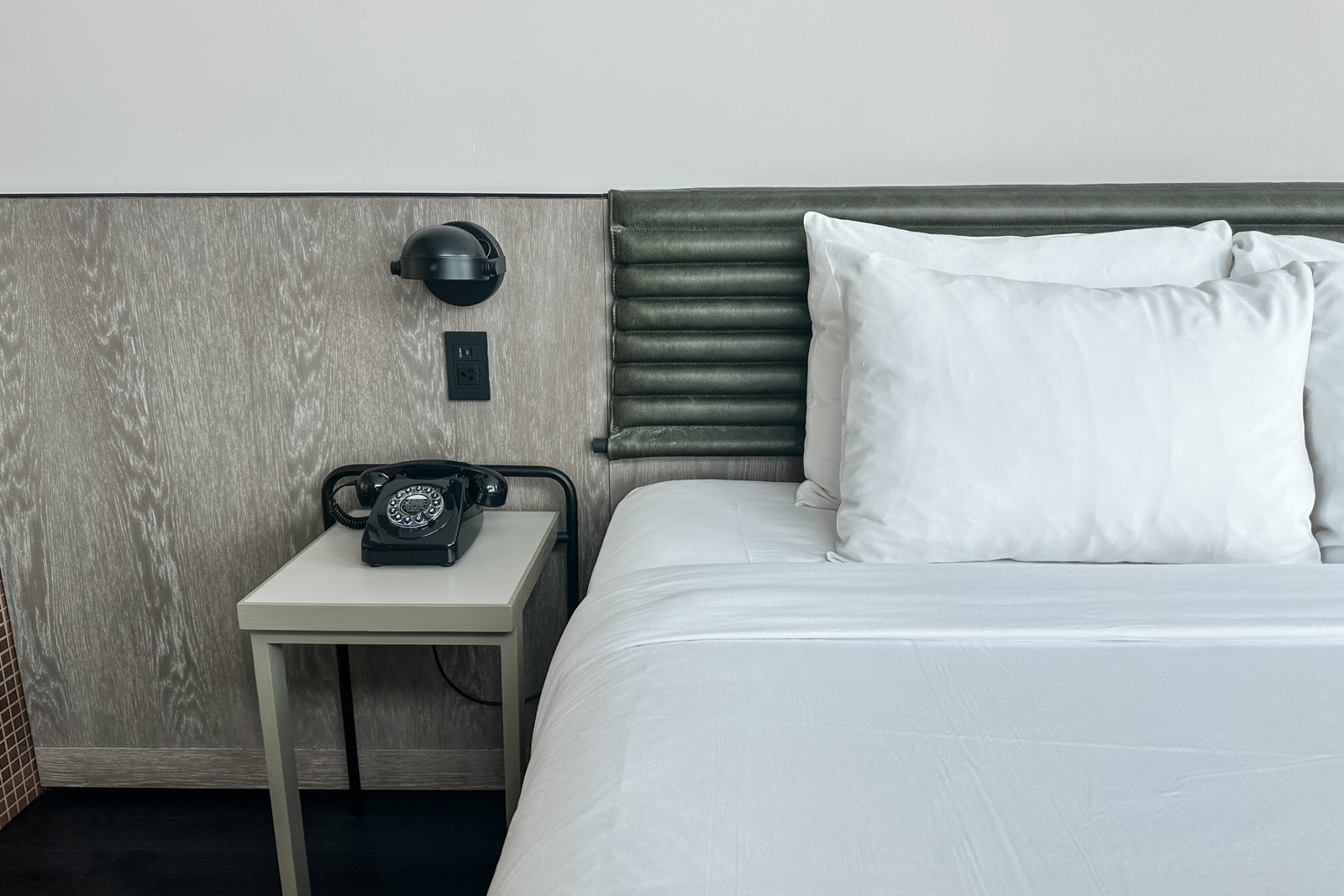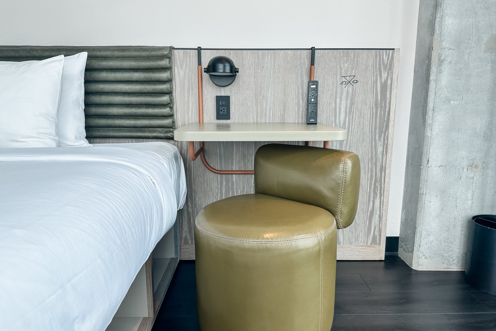 Moxy hotels, in general, encourage folks to get outside of their room and spend time in social places like the lobby. So if you're planning on working inside your room, know that the nightstand doubles as a small desk, but there's plenty of great coworking space downstairs.