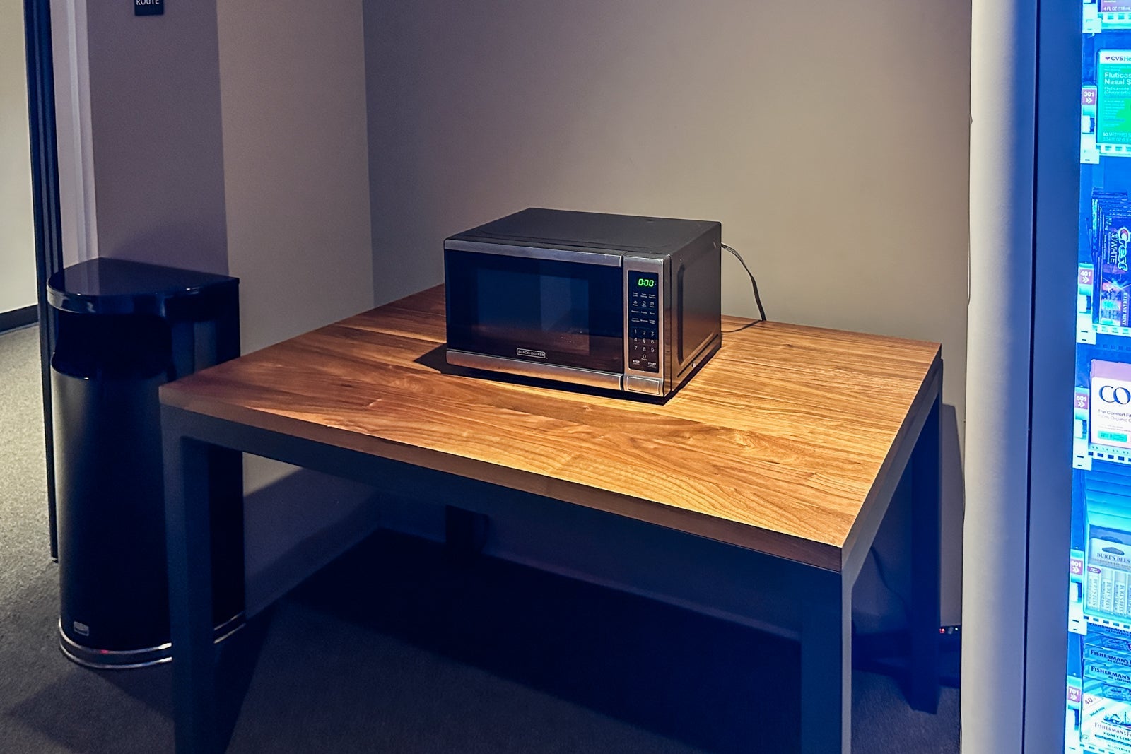 I also found a CVS vending machine on one floor that had nearly anything you might need, like toothpaste, painkillers and more. There was also a microwave in this area, which might seem random but could be handy for guests.