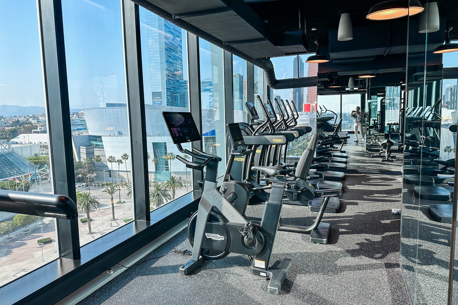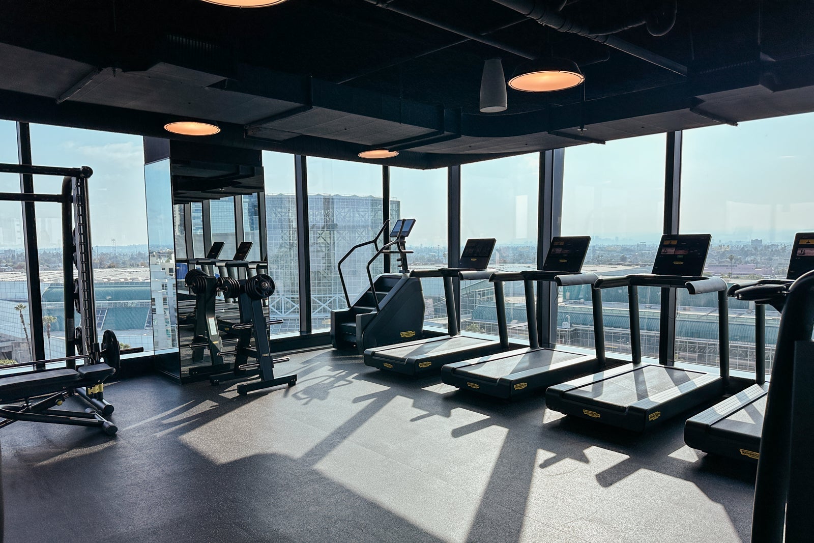 Both hotels share an efficient and rather large gym with plenty of equipment — and incredible views — high up in the hotel.