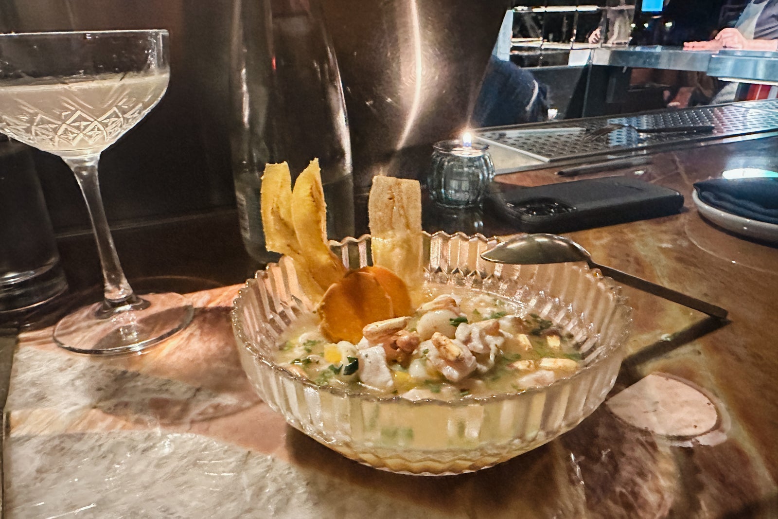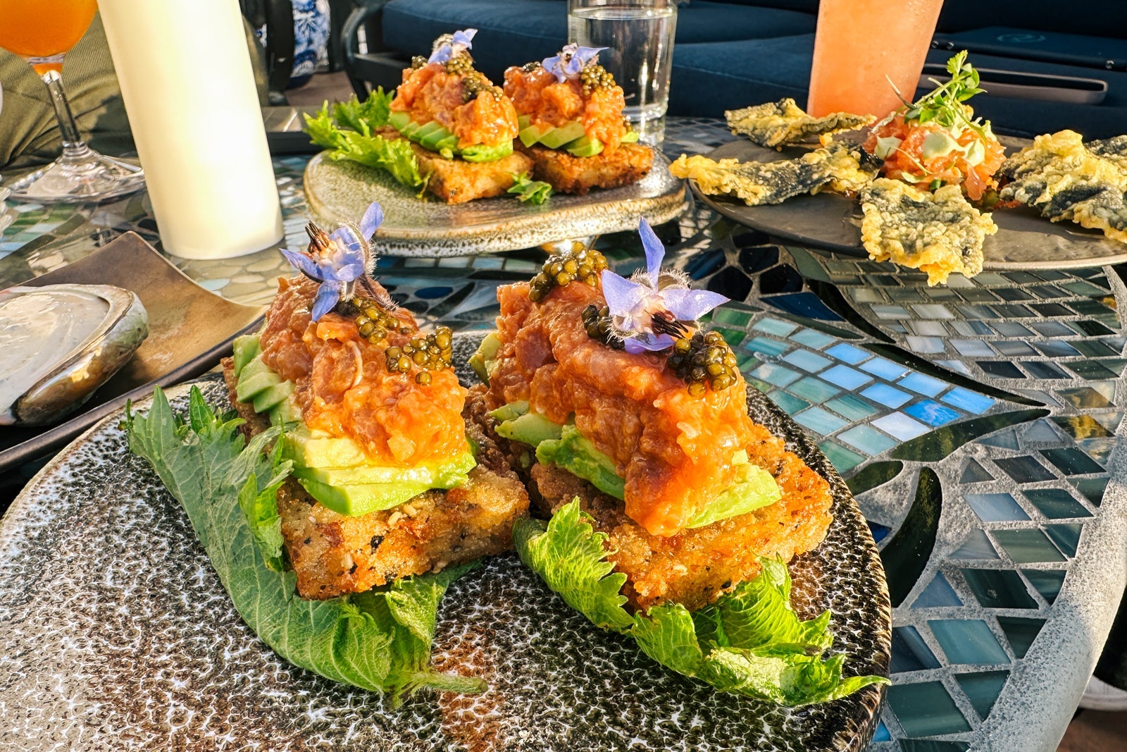 My experience started with a cowboy-themed pool party at Golden Hour (featuring a carousel bar with a pool deck). This set the tone for my Saturday night, which involved galavanting between bars and restaurants on Level 8, trying everything from a spritz and crispy tuna rice at the outdoor Mother of Pearl to South American-style seafood and cocktails at Que Barbaro to fresh sushi at Lucky Mizu.