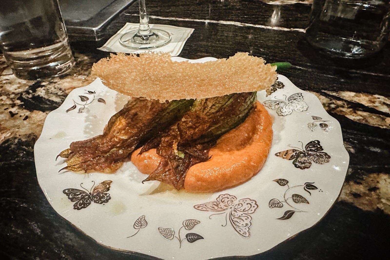 If clubbing isn't your thing, you can also just visit the restaurants that open before things get too wild. My Sunday dinner was at Maison Kasai, a French-meets-Japanese teppanyaki spot by chef Joshua Gil where you can choose from a tasting menu or order high-end steaks and seafood cooked right in front of you. While I very much enjoyed all of my hearty steak, the real showstopper was a squash blossom appetizer.