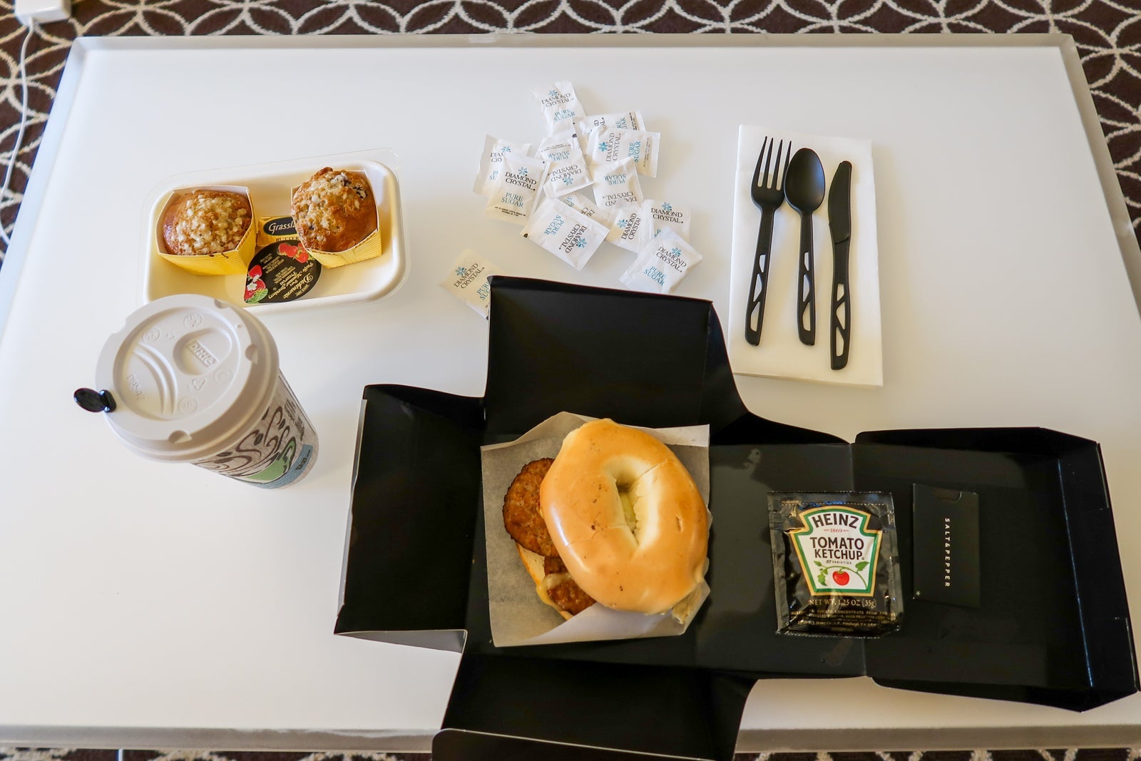The presentation wasn't much, given I was eating it in my room, and there was an obscene amount of packaging plus the dozen or so sugar packets with my one coffee.