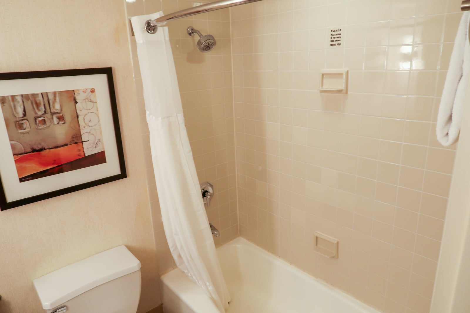 As I entered the room, there was a bathroom immediately to the left with a shower/tub combo.
