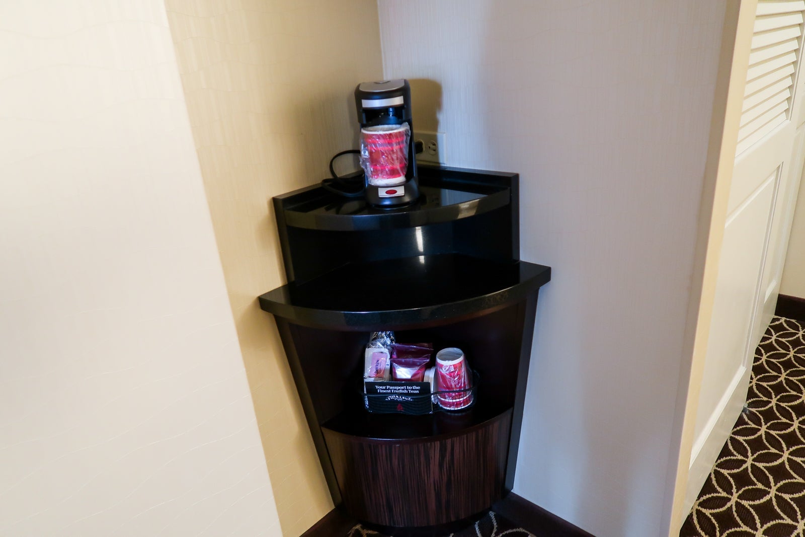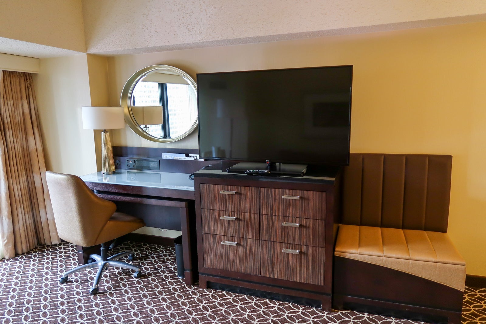 Despite so much free space and that view, the room did feel pretty tired. While this would have a spectacular hotel when it opened 35 years ago given its unbeatable location, the furniture was a few decades past its prime. It felt like the sort of '90s hotel room Jordan Belfort might have in "The Wolf of Wall Street."