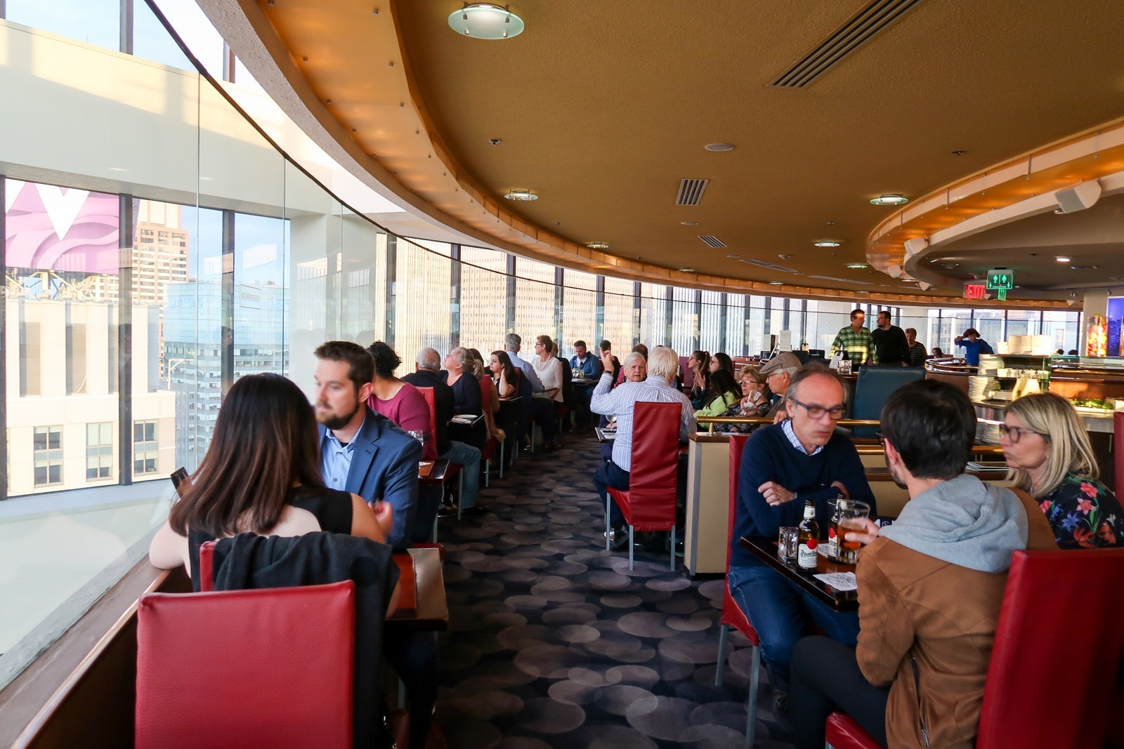 Let's start at the top. On the 48th floor was The View restaurant and lounge, billed as New York's only revolving restaurant and bar. The restaurant was open for dinner daily (as well as Sunday brunch), and reservations were required. There was a three-course set menu each evening for $92 per person, excluding drinks, taxes and tips, and it included high-end options like lobster and foie gras. It was a romantic spot for a special occasion for both tourists and locals.