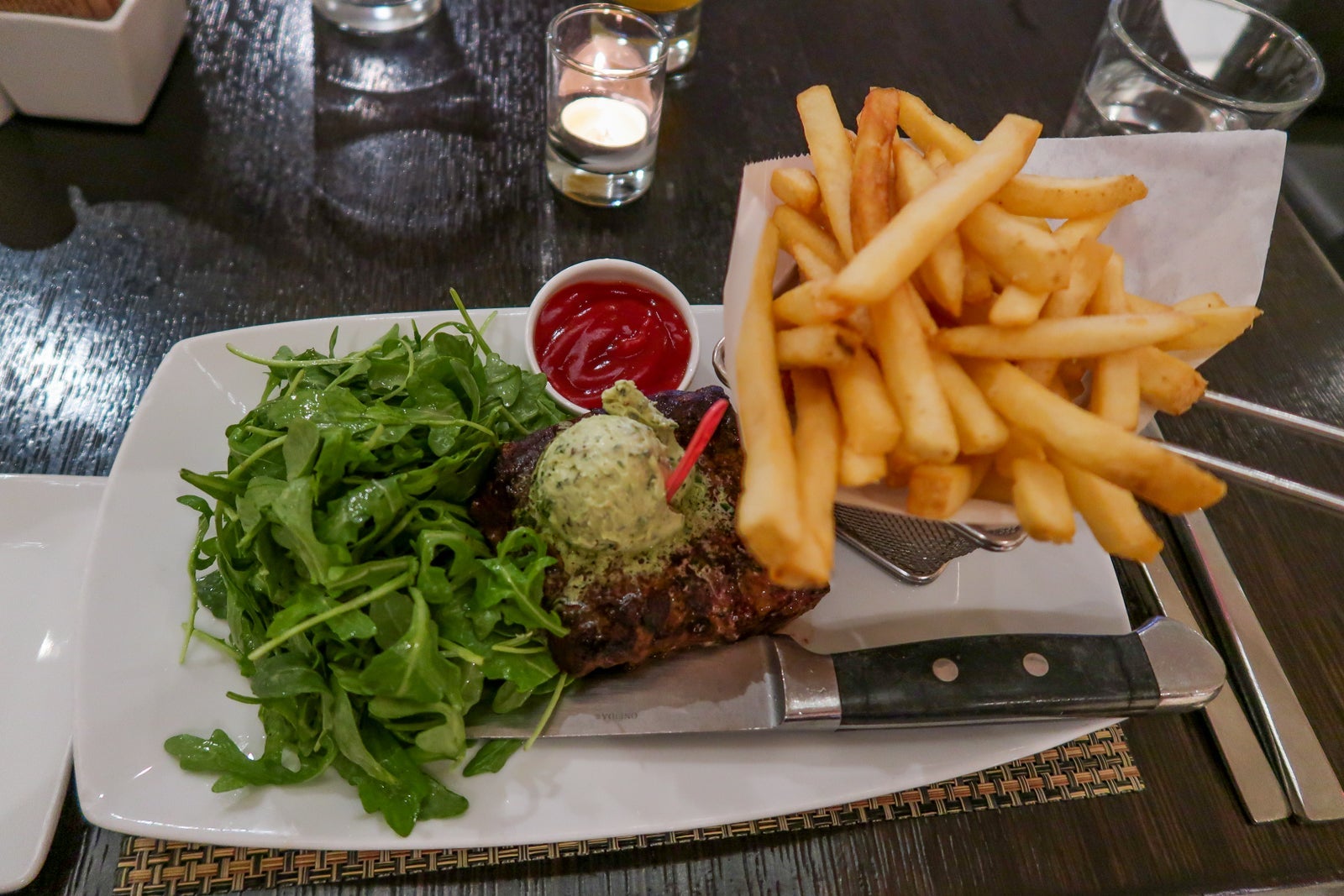 Set away from the windows and without those incredible views, the prices here were much more reasonable. I ordered a steak, which was excellent.