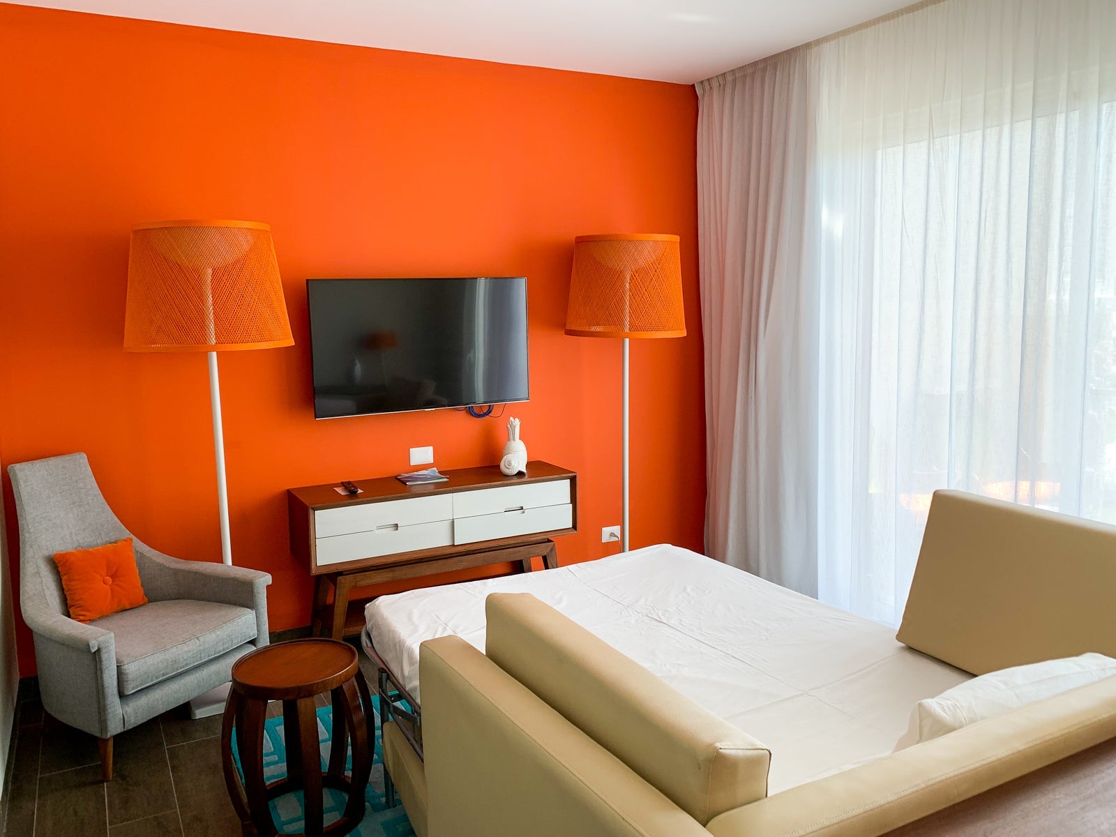 The resort was stylish, and it was surprisingly difficult to tell which buildings belonged to Sensatori and which to Nickelodeon. Our room felt modern, but it also obviously seemed not to have been designed for kids — especially the sleek but impractical bathrooms.