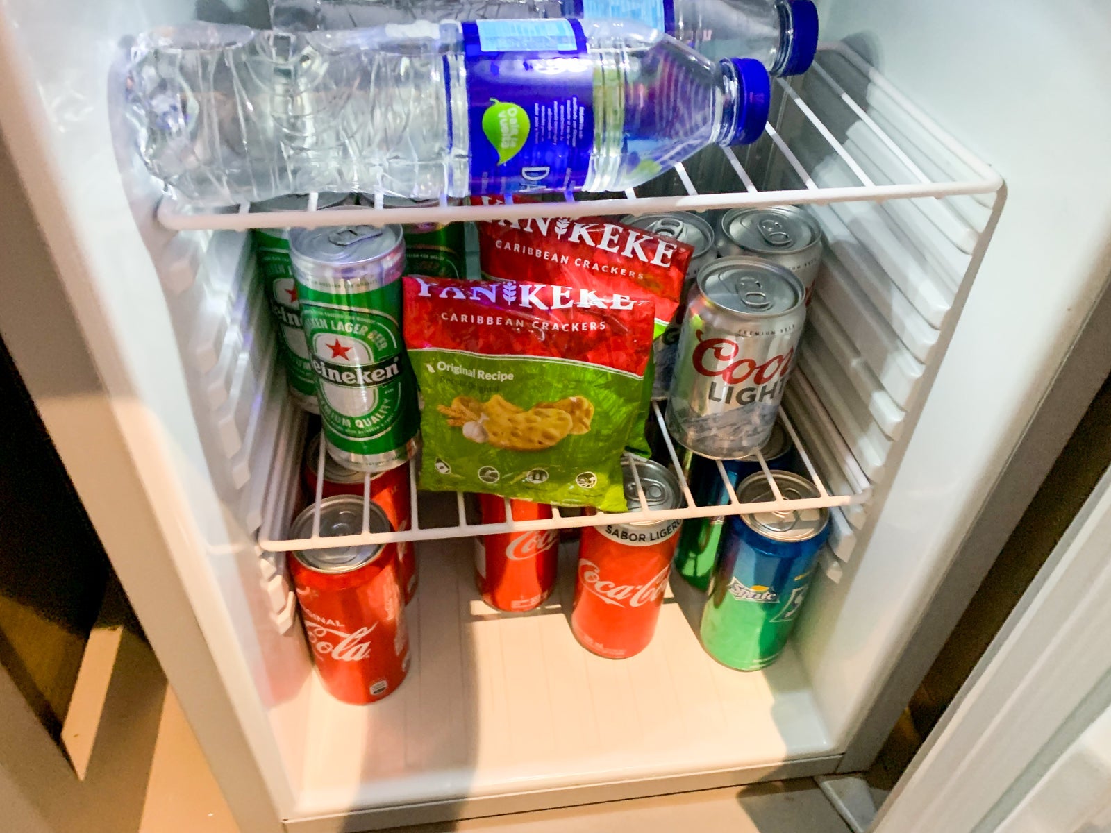 A minifridge was stocked with juices, soft drinks, beer and a few snacks, and was refilled daily. Some parents probably would have liked milk included, but that tends to spoil quickly.